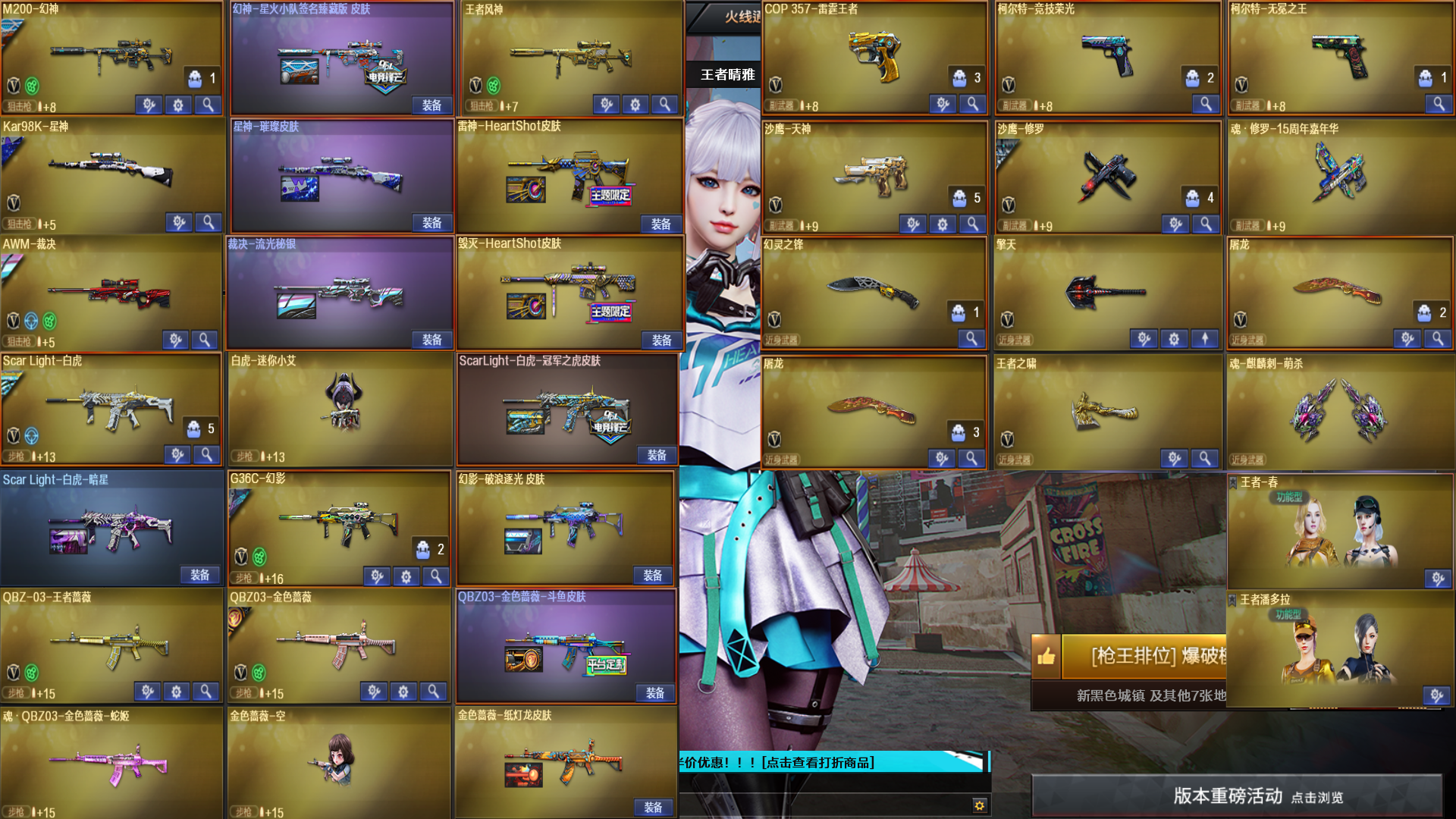 🔥热门枪械:星火小队+幻影破浪逐光+无冕之王+王者蔷薇+玄武+王者风神+雷神小红+白虎迷你小艾+蔷薇空+黑龙吞噬者🔥