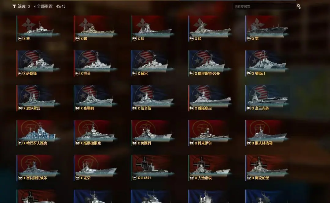 x级巡洋舰34艘:吉野(圣诞皮)、钏路、藏王(太空皮)、淀、伍斯特、塞勒姆、得梅因(太空皮)、波多黎各、涅夫斯基、萨瓦斯托波尔、彼得罗(苏联伴生皮)、斯大林(战争迷彩)、斯摩棱斯克、科米萨尔、莫斯科(太龙皮)、兴登堡(太空皮)、普利茅斯、歌利亚、直布罗陀、米诺陶斯(太空皮、变形金刚热破)、亨利四世(万圣节皮)、科尔伯特、马赛(伴生皮)、威尼斯(变形金刚)、那不勒斯、临海、金狮、刻耳柏洛斯、布里斯班、圣马丁、卡斯蒂亚等等 还请诸位不要使用钢铁、煤炭资源!!!不要解雇高等级舰长!!!攒的不容易谢谢理解!!!