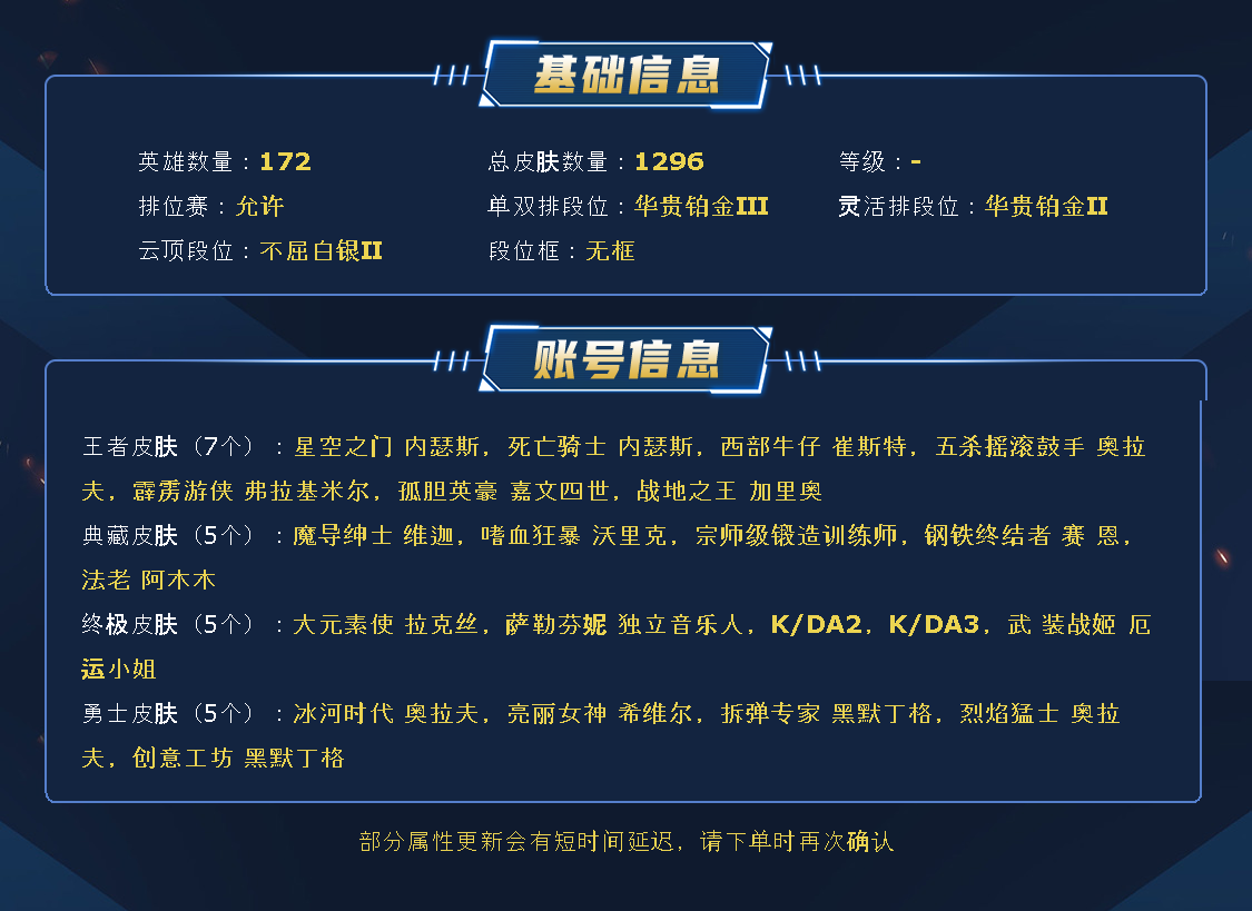~~喜欢记得收藏~~可排位~~1300皮全英雄丨776原皮212炫彩丨90神话/至臻/海克斯丨鼠年套丨FPX套丨舞会公主丨女帝卡特丨星守风女丨御星艾希丨卧虎藏龙丨EDG佛耶戈丨神龙尊者李青丨至高天奎桑提丨电玩女警瑞文丨KDA狐狸卡莎丨玉剑剑姬剑圣刀妹丨灵魂莲华狐狸莉莉娅~~租之前尽量查一下游戏ID,确保段位是您需要的,避免浪费您的时间~~请勿挂机逃跑故意送人头,谢谢合作,谢谢~~