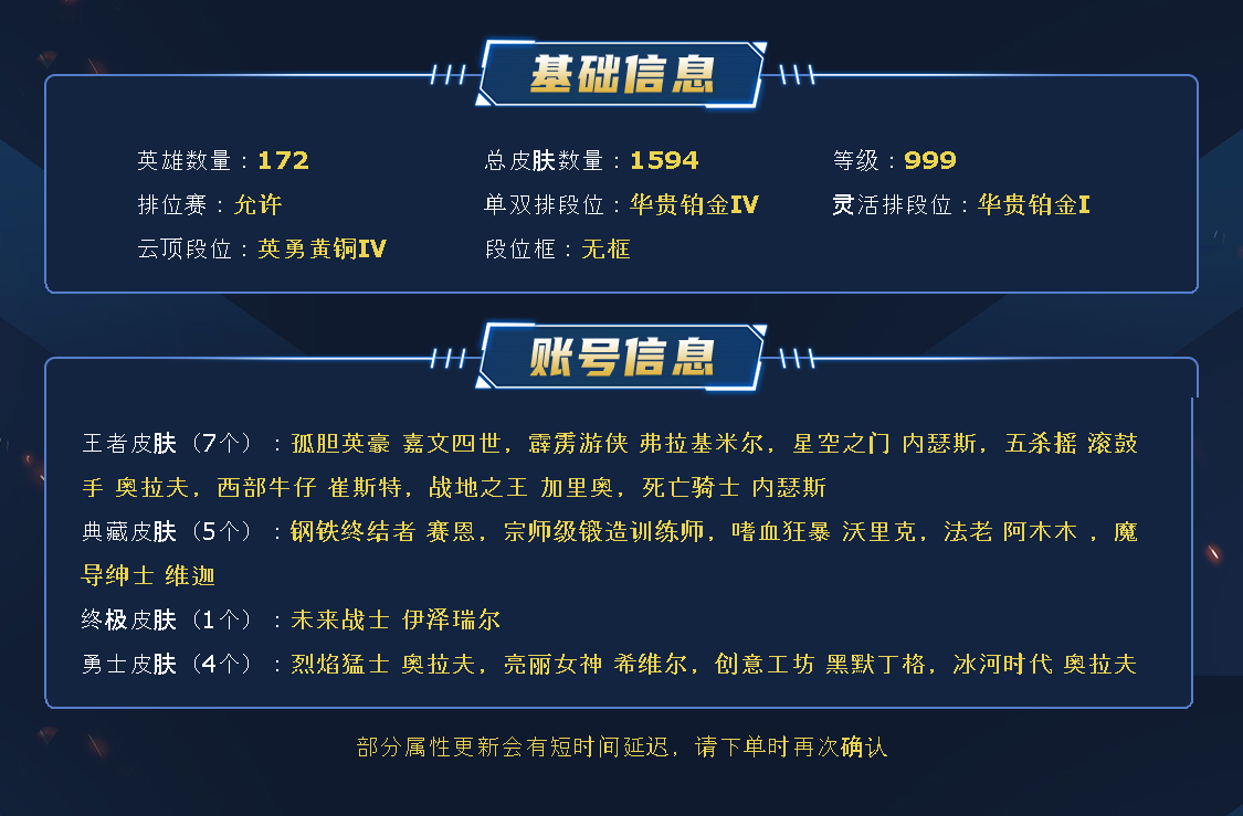 ~~喜欢记得收藏~~可排位~~1094皮全英雄丨889原皮205炫彩~~租之前尽量查一下游戏ID,确保段位是您需要的,避免浪费您的时间~~请勿挂机逃跑故意送人头,谢谢合作,谢谢~~