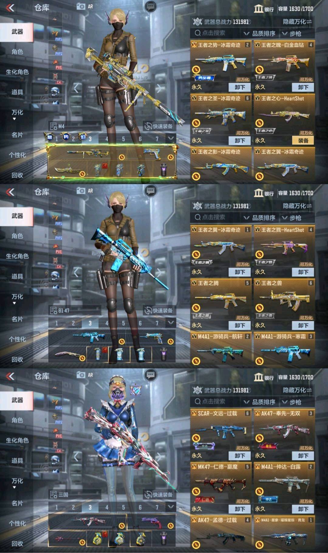 🔥主流步枪:❤🔥王者之魄-紫电熔岩❤🔥王者之魄-白金血钻❤🔥王者之魄-拉丝❤🔥王者之心-拉丝❤🔥王者之戳-冠军LGD❤🔥王者之戳-拉丝❤🔥王者之影-冰霜奇迹❤🔥王者之势-冰霜奇迹❤🔥王者之翼-冰霜奇迹❤🔥王者之影-冰霜奇迹❤🔥王者之兽❤🔥王者之腾❤🔥M4A1-星象璀璨星辰2把❤🔥M4A1-仲达-白露❤🔥M4A1-仲达-过载❤🔥AK47-奉先-无双❤🔥AK47-孟德-过载❤🔥MK47-仁德-赢魔❤🔥81式-瑜❤🔥AK47-元让❤🔥VEPR12-本初❤🔥SCAR-文远-过载❤🔥AK47-策-霸魂❤🔥M4A1-威候-屈魔❤🔥M4A1-武圣-傲魔❤🔥M4A1-境界荣光❤🔥AK47-波塞冬❤🔥M4A1-游骑兵-寒霜❤🔥M4A1-游骑兵-紫魇❤🔥M4A1-游骑兵-枪娘❤🔥M4A1-游骑兵-航轩❤🔥AK47-Rush-夜袭❤🔥M4A1-哈迪斯❤🔥M4A1-堕天使❤🔥MK47-机械纪元❤🔥MK47-云舞❤🔥81式-光明之神-三足金乌❤🔥81式-阿波罗❤🔥SKS-美杜莎❤🔥其他的还有很多就不写了