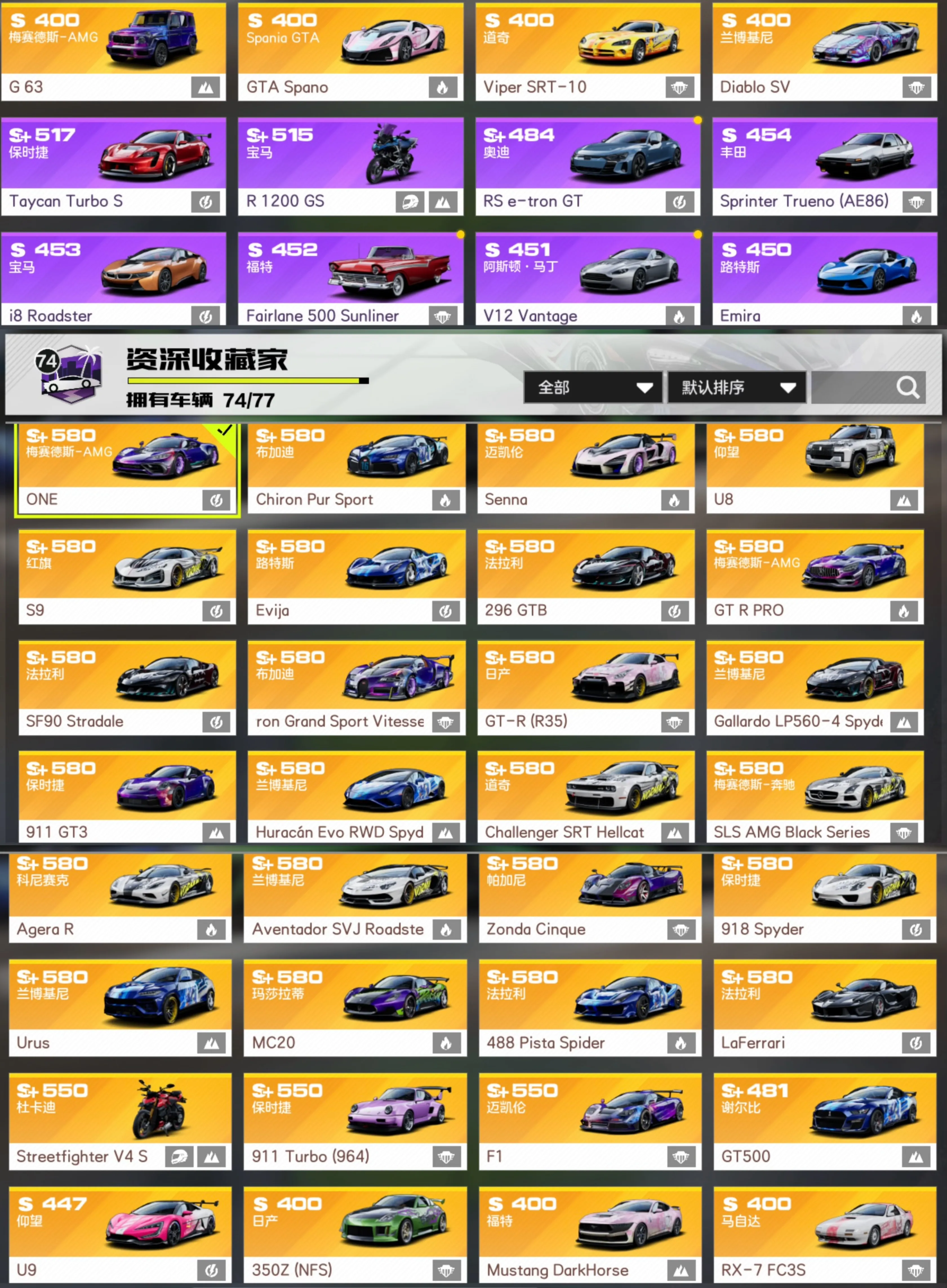 恶意投诉永久拉黑,你将无法租借本店所有账号!万氪天花板🔥62金车!全组别满改殿堂AMG*ONE、塞纳、布加迪套件🔥满图鉴-全金车-最新传奇涂装星澜&大耳凯蒂猫&金属风暴高达&最经典涂装涂鸦艺术&漫画狂想。衣柜服装拉满:传奇限定特效服装霜雪王座、芭蕾幻梦、国韵金龙各种限定服装闪耀时刻、魅惑黑猫、暗黑魅影、午夜低语、圣诞礼赞、JAY绝版套装。