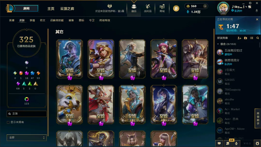峡谷十几个至臻 满英雄 主上单 中单 AD 亚索维克托 永恩