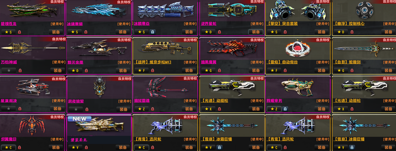 紫钻●碧蓝圣龙神EX●怀旧关刀雷神海皇盘龙炮电锯●满全赛季●光束套●闪电野牛94维京套去雾