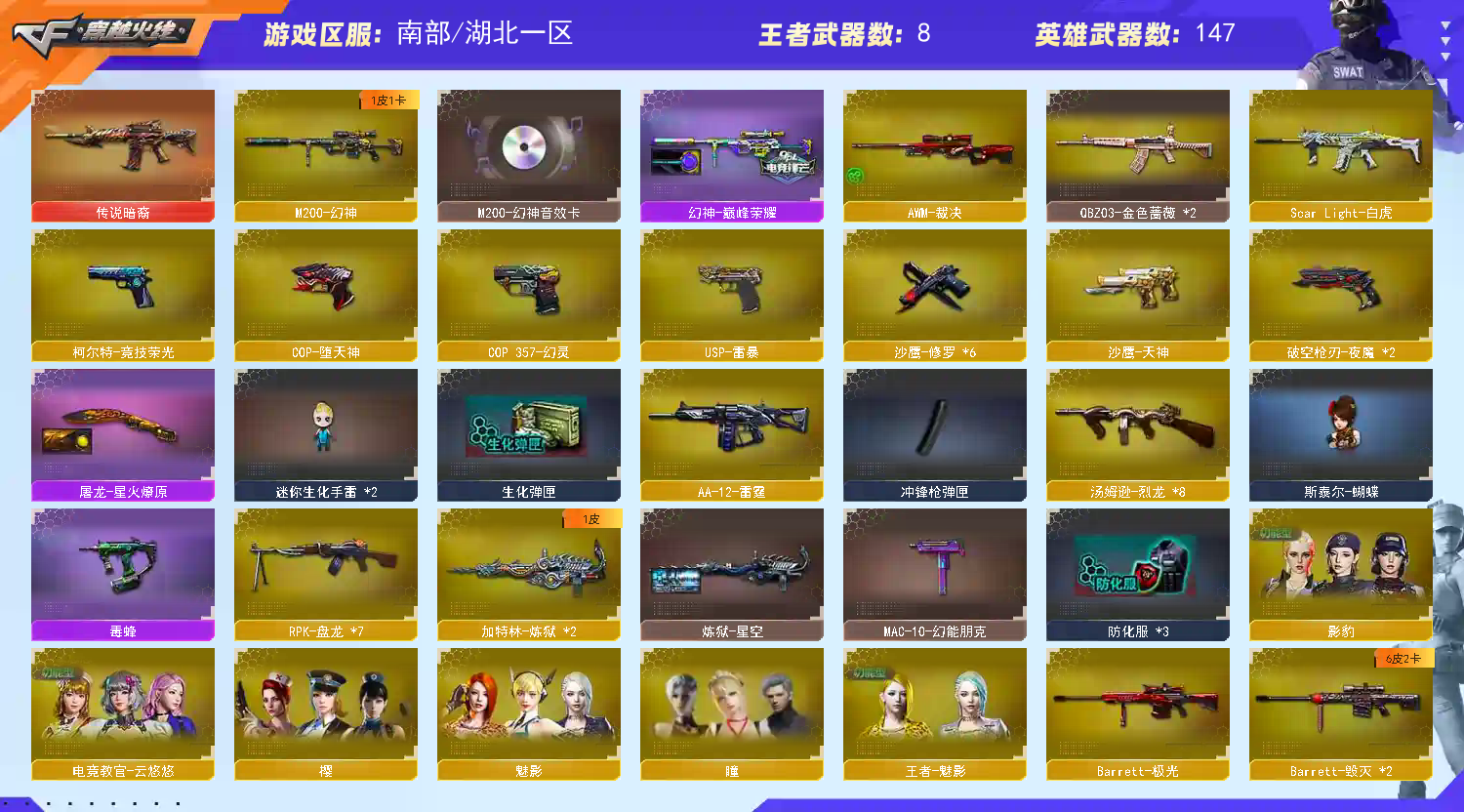 vip6 160v 【传说暗裔】【m200-幻神+幻神音效卡+幻神-巅峰荣耀】【m200-竞技荣光+柯尔特-竞技荣光+擎天-竞技荣光+竞技荣光手雷套*5】【王者星神】【scar light-白虎】【qbz03-金色蔷薇*2+qbz-03-王者蔷薇】【hk417-朱雀】【6盘龙+炼狱】【6烈龙+斯泰尔-蝴蝶+死亡之眼*2+毒蜂】【m4a1-夜魔+破空呛刃-夜魔*2+马来剑-夜魔+夜魔手雷套*5】【m4a1-幻灵+cop 357-幻灵+幻灵之锋+幻灵手雷套*6】【usp-雷暴+斩神刀-雷暴+雷暴手雷套*3】【cop-堕天神】【ak47-火麒麟+火麒麟-cf star+火麒麟-雷神+火麒麟-轻羽】【m4a1-黑龙】【m4a1-雷神+雷神音效卡+雷神-暗月+雷神-机甲刑天+雷神-宇航兔+雷神-荣耀之魄】【m4a1-黑骑士+黑骑士音效卡+黑骑士-白马银呛+黑骑士-摸金校尉+黑骑士耀金+黑骑士-暗月+黑骑士-娜塔莉娅】【ak47-无影+无影耀金】【m4a1-死神+死神-秘银】【ak47-黑武士】【ak12-天启】【an94-超新星】【m4a1-龙血】【无影-神兵利器】【黑武士-锦绣游龙】【m4a1-玫瑰精灵】【9a-91-烈火】【王者】王者之心 王者之翼 【黑骑士-海王】【awn-天龙+天龙-能量核心+天龙-cf star】【barrett-毁灭+毁灭音效卡+毁灭-星空+毁灭-黑大圣+毁灭-风暴+毁灭-荣耀之怒+毁灭-墨兰】【barrett-极光】【barrett-暗月传说】【awm-裁决】【aa-12-雷霆】【沙鹰-修罗】【小人呛】雷神-小红 m4a1-雷神-精英刀锋 裁决-雪莉杨【角色】4防电竞教官-云悠悠 4防王者-魅影 4防葵-赛博朋克 4防灵狐者-职业经理 奇洋探员 瞳 修道士 樱 影豹 魅影 虎妞 初恋灵狐等各种永久道具详情看图