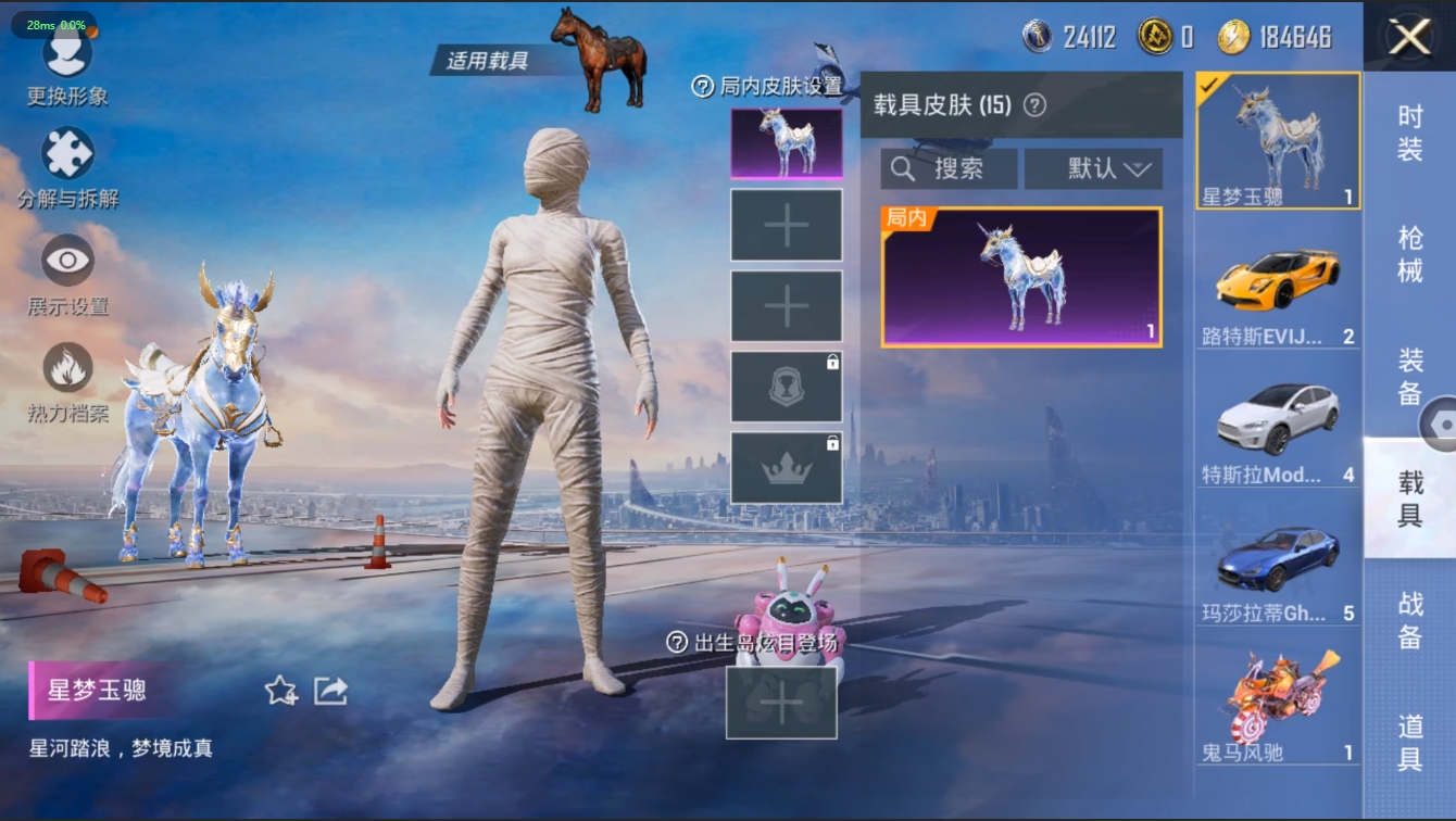【特效枪:12 粉装:38 载具:15】木乃伊❤梦幻火箭❤五爪金龙马卡龙降落伞⚡特斯拉Roadste