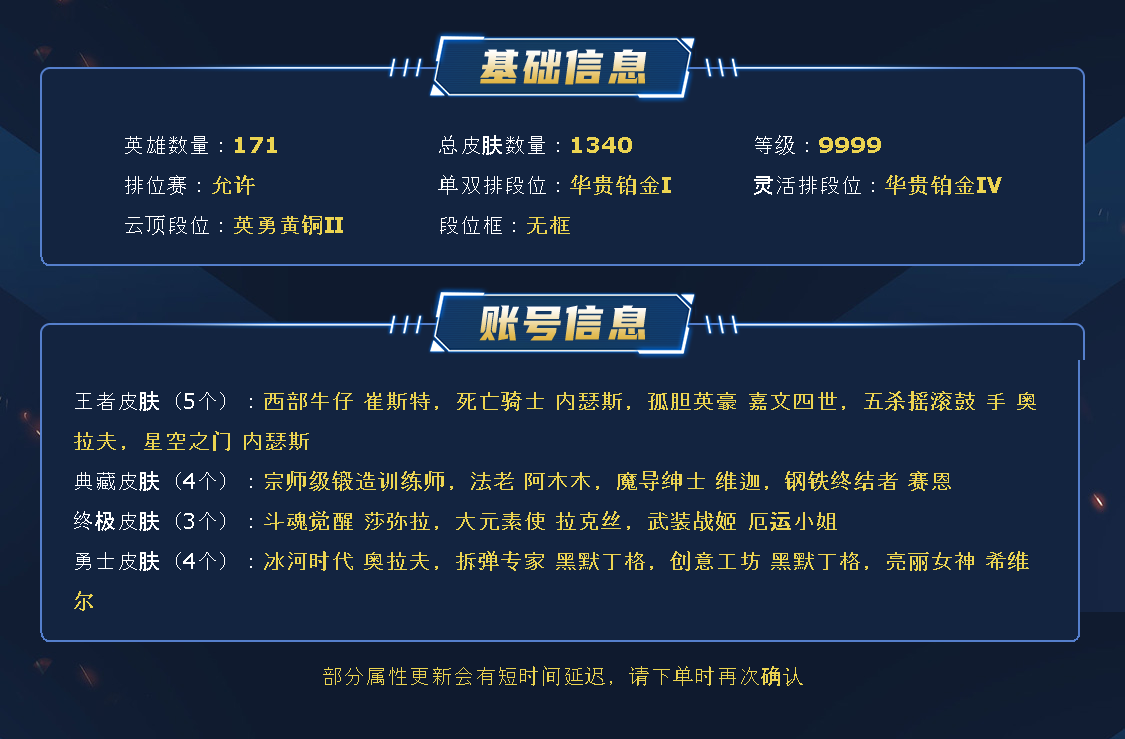 ~~喜欢记得收藏~~可排位~~1247皮全英雄~~租之前尽量查一下游戏ID,确保段位是您需要的,避免浪费您的时间~~请勿挂机逃跑故意送人头,谢谢合作,谢谢~~