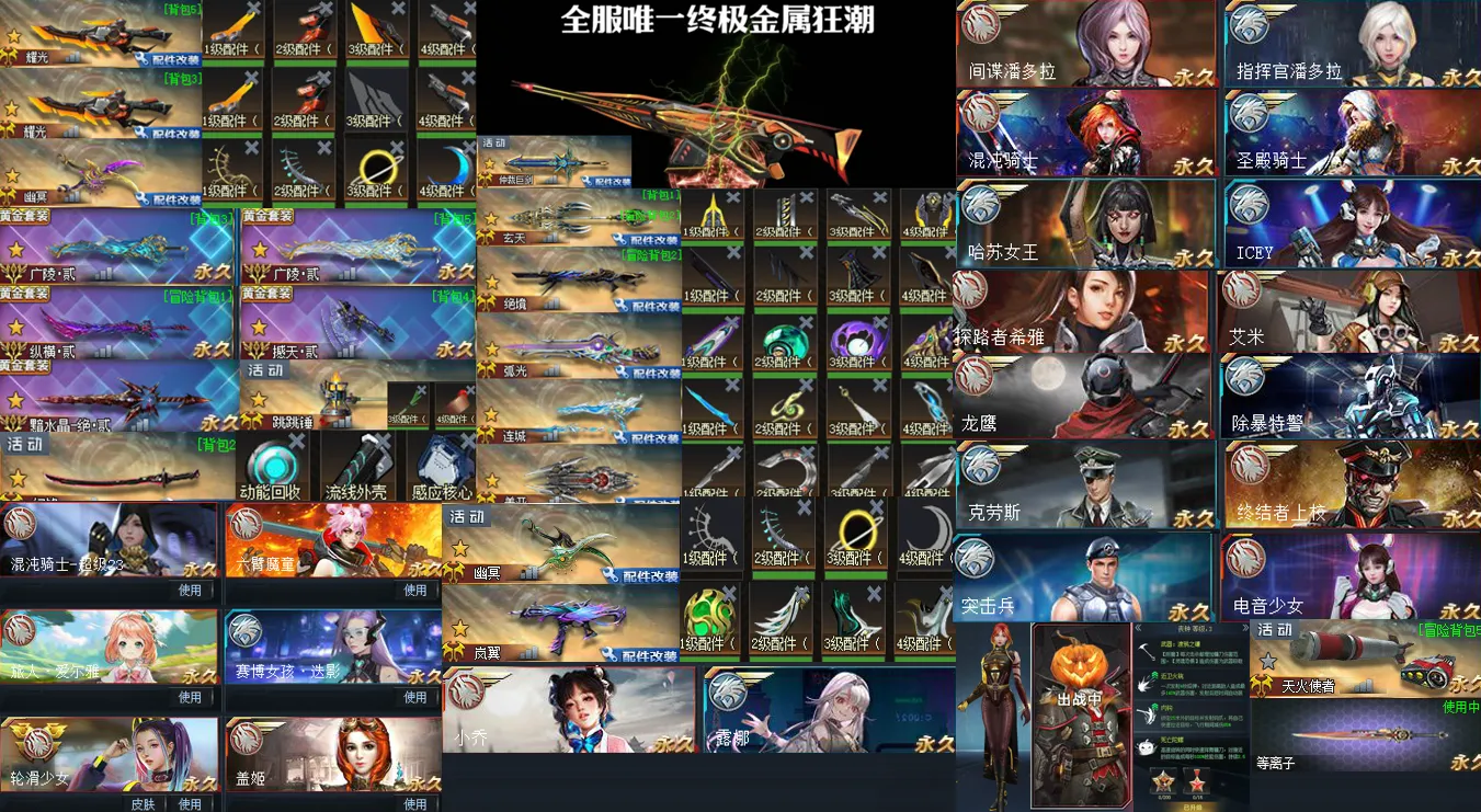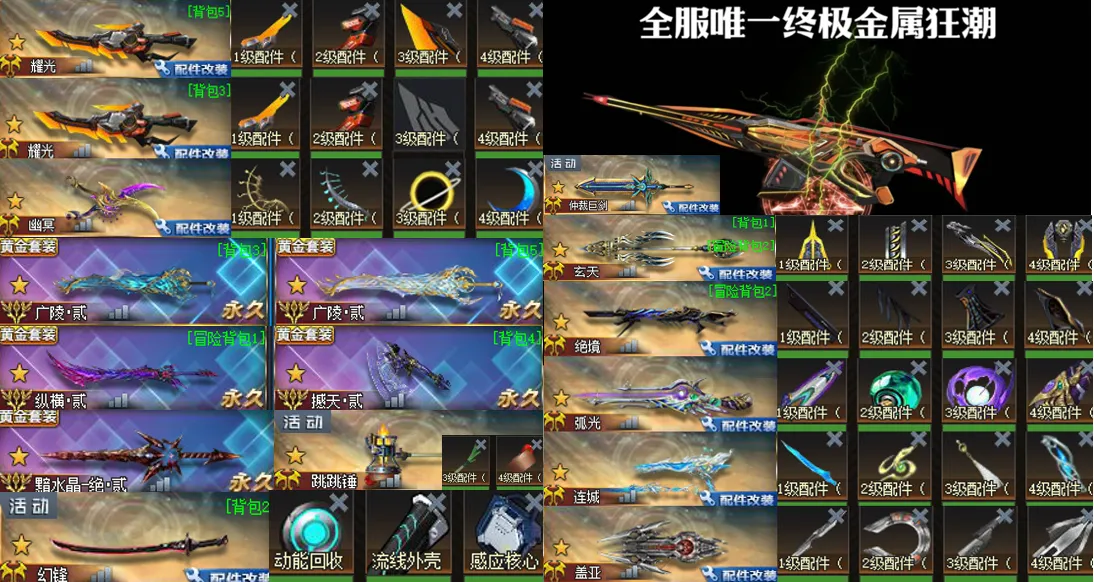 终极全服唯一皮肤狂潮潘多拉炽焰皮无限EX金蛇屠魔御雷皮墨韵合新角色露娜◆三广陵贰双耀光双幽冥双水晶贰双纵横贰玄天满撼天森罗皮跳跳锤等◆满弧光满连城◆满盖亚岚翼带皮等新多配件◆极品竞技刀战号