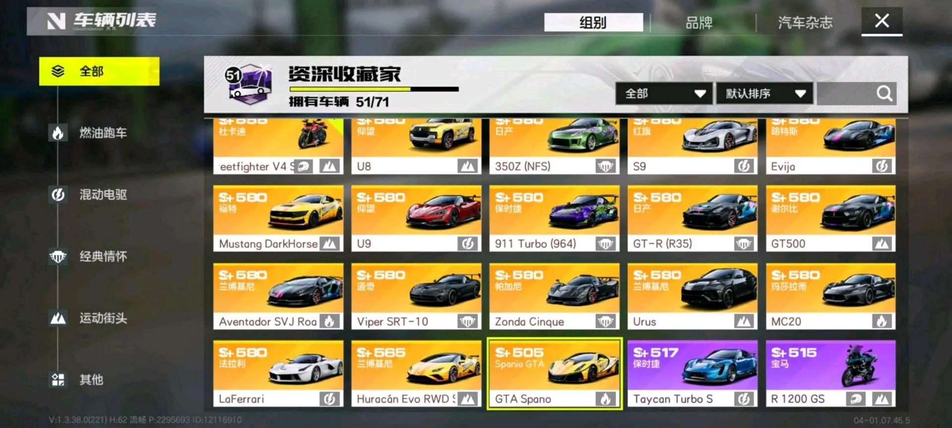 【安卓】 21金✨小牛飓风✨杜卡迪✨拉法✨帕加尼zonda✨红旗s9✨玛莎mc20✨谢尔比gt500
