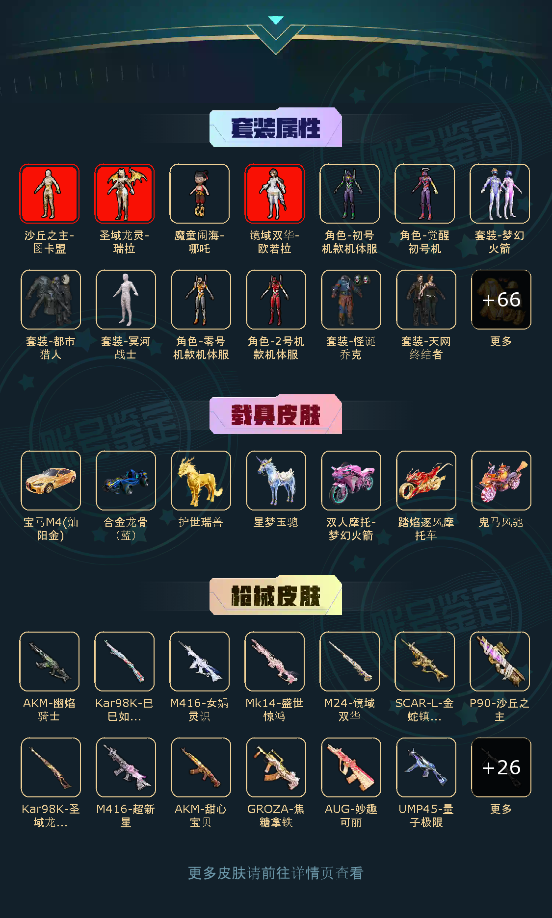 74粉,7载具,396套装,27王牌印记,无敌战神历史最高段,271299热力值 平底锅-林间仙鹿/AKM-甜心宝贝/SCAR-L-梦幻火箭/AKM-绿萝繁花/AKM-幽焰骑士/M416-心之恋语/M16A4-葫芦兄弟/M416-女娲灵识/AKM-炫紫旋律/GROZA-焦糖拿铁/SCAR-L-金蛇镇世/AUG-妙趣可丽/M762-甜蜜誓约/M416-超新星/SCAR-L-魔童闹海 哪吒/SKS-碧影闪光/Mk14-盛世惊鸿/Mk14-闲梦青缨/Mini14-荧光虫舞/SLR-暗夜玫瑰/PKM-天星战神/MG3-洛神天依/M249-蓝莓炮弹/DP-28-豹影疾电/UZI-绮梦青鸾/汤姆逊-怪笑疯兔/UMP45-量子极限/UZI-筑梦精灵/UMP45-雪国精灵/P90-沙丘之主/烟雾弹-丁香清露/破片手榴弹-热量炸弹/Kar98K-伏魔团/Kar98K-圣域龙灵/AWM-花间之火/Kar98K-巳巳如意/AWM-橘柚倾心/M24-镜域双华/Kar98K-未来歌姬/宝马M4(灿阳金)/鬼马风驰/合金龙骨(蓝)/护世瑞兽/星梦玉骢/双人摩托-梦幻火箭/踏焰逐风摩托车/