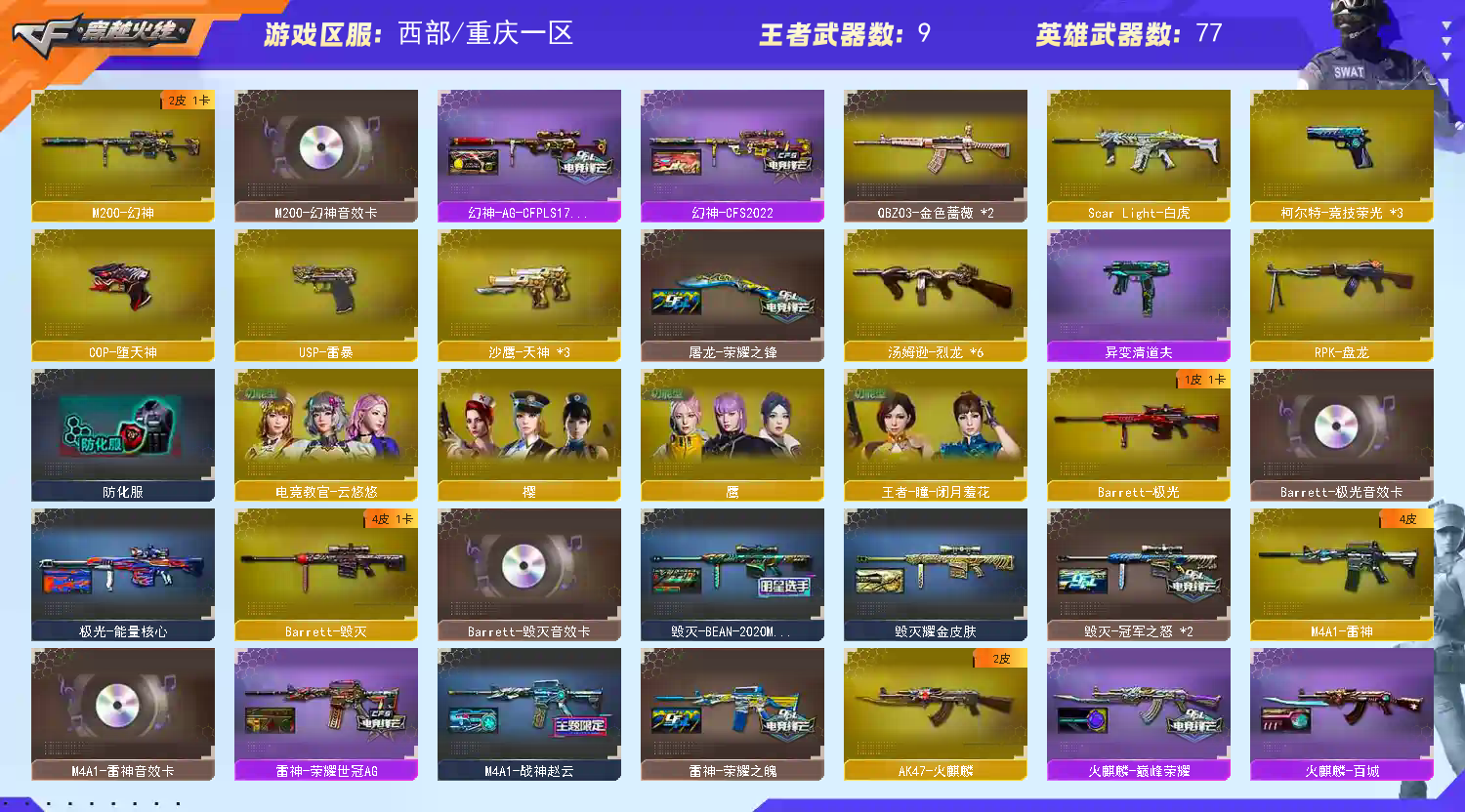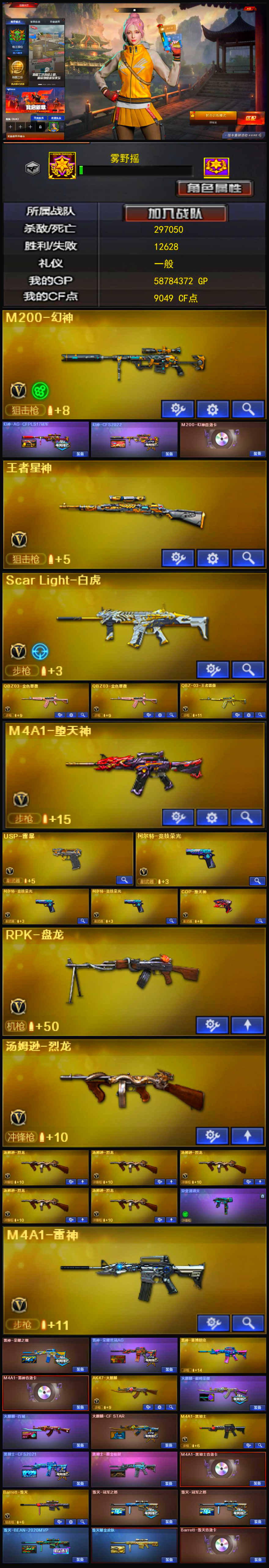 可排位/M200-幻神+音效卡+冠军双皮/白虎QBZ蔷薇+云悠悠+6烈雷暴王者星神+满副爆破生化全装