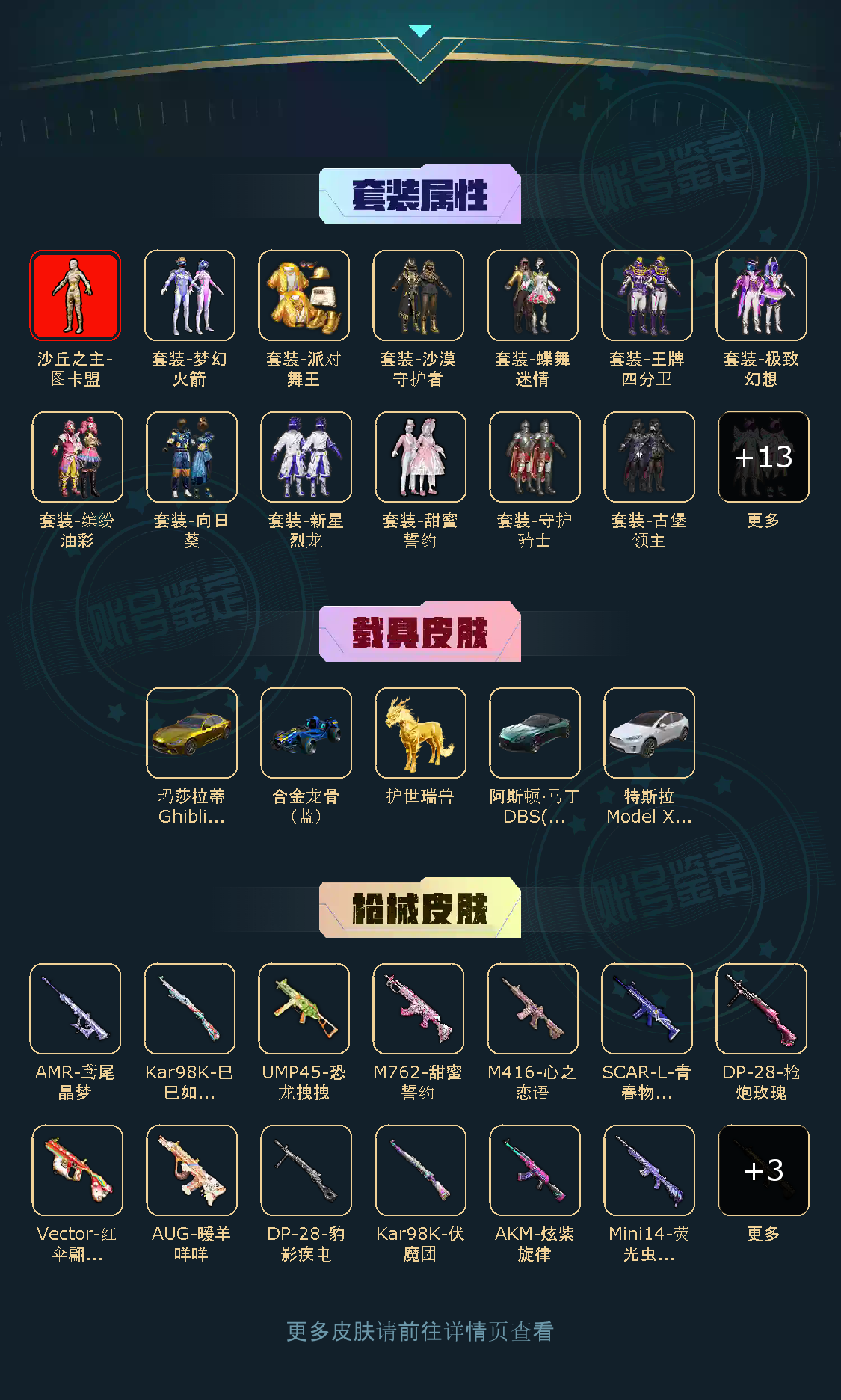 【稀有资产】沙丘之主-图卡盟[2级]/巡查员上衣/套装-派对舞王/套装-沙漠守护者/套装-奇异狩猎者/套装-粉红小猪/套装-浪漫天命/套装-潮萌小黄鸭/套装-雪山精英/套装-暗影哥特/套装-龟仙人/套装-迅捷狂鲨/套装-胖达团团/套装-浪漫波比/套装-星河浪客/套装-兔兔白日梦/套装-晶辉守护/角色-都市丽猫/角色-俏兔智灵/套装-暗夜武装/套装-缤纷假日/套装-纯白跃动/套装-动感兔斯基人偶服/套装-光子十周年/套装-狂沙舞者/套装-狂战萌兔/套装-浪漫假日/套装-青涩年华