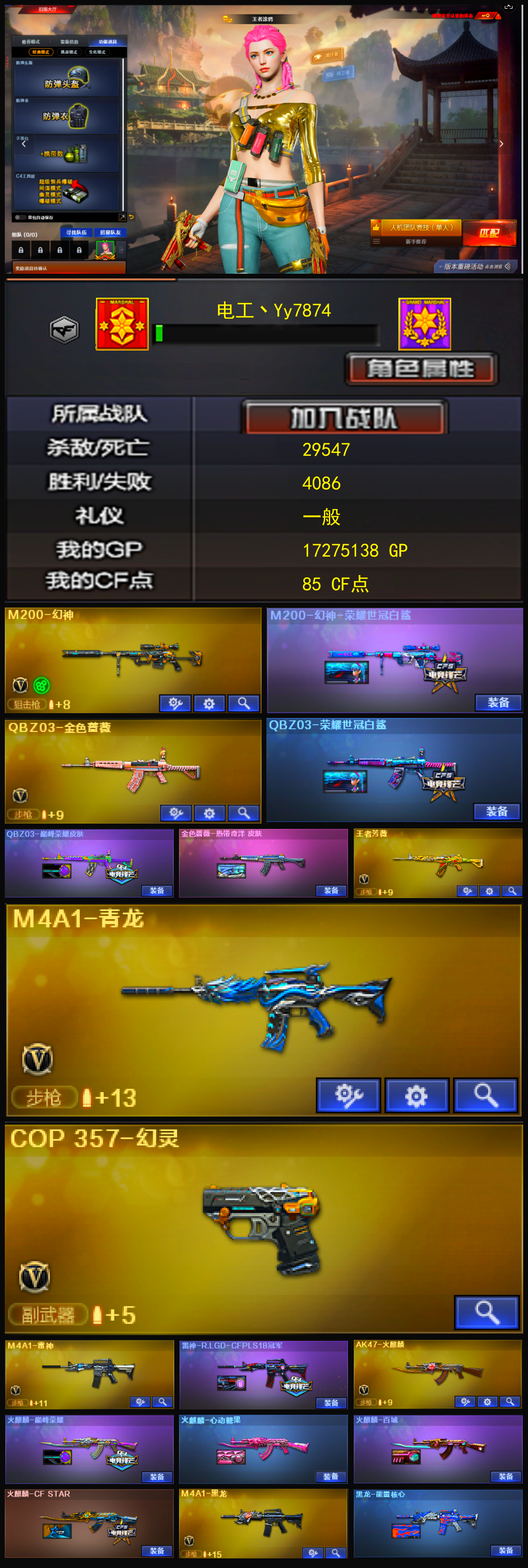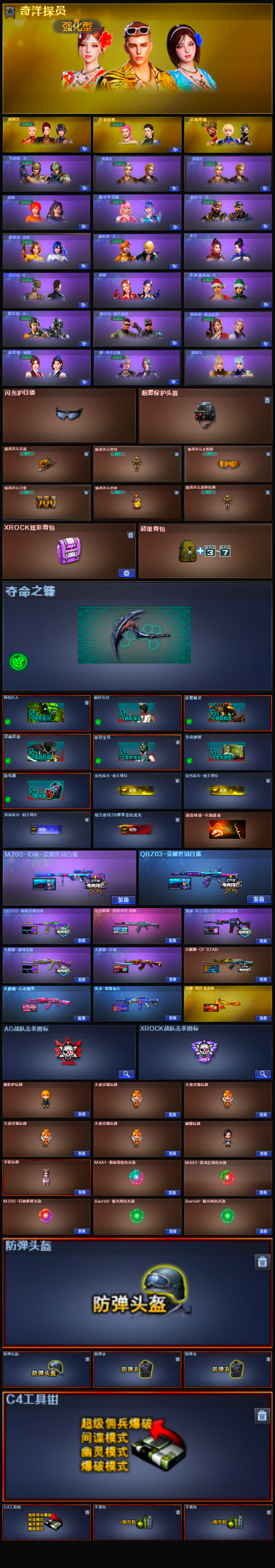 【m200幻神+荣耀世冠白鲨】【qbz03金色蔷薇+热带奇洋皮肤+荣耀世冠白鲨+巅峰荣耀皮肤】【王者芳薇】【雷神+rlgdcfpls18冠军】【火麒麟 黑龙 雷神 青龙 无影神兵利器 黑武士锦绣游龙 超新星热带奇洋 超新星悦享 黑骑士海王 天龙 极光 烈龙云海游龙】【修罗 cop357云龙】【龙啸 幻灵之锋 擎天云海游龙 屠龙云海游龙 龙啸热带奇洋】【小人呛 hk417朱雀蛇隐宗 雷神小红 毁灭孙三炮 cop白鲨】【挑战 臻选次元套】【四防 王者涂鸦】【角色 奇洋探员 蛇隐宗 云海玲珑 云海游龙炫彩背包 热带奇洋炫彩背包】