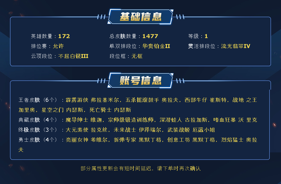~~喜欢记得收藏~~可排位~~1500皮全英雄~~租之前尽量查一下游戏ID,确保段位是您需要的,避免浪费您的时间~~请勿挂机逃跑故意送人头,谢谢合作,谢谢~~
