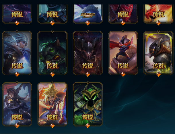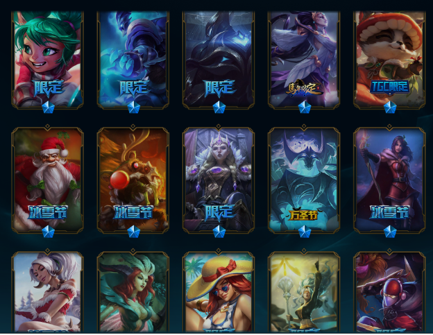 【神话皮肤】海克斯科技 嘉文四世、神凰行者 瑞雨圣皇 艾维尼亚,源代码 乐芙兰,波比的巧克力工坊,冠军典狱长 锤石,冠军之隐 劫,广寒仙子 嫦娥。密林猎手 提莫,圣诞老人 古加拉斯,圣诞驯鹿 克莫格,胜利女神 瑟庄妮,死亡誓约 劫,。幸运女神乐芙兰,雪装 奈德丽,永恒之森 乐芙兰,泳池派对 厄运小姐,FNATIC 迦娜,SKT T1 劫。SSW 泰隆,