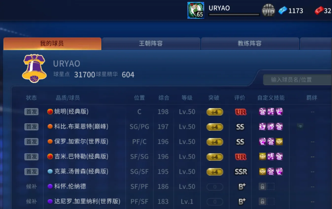 美航经典幻神❤️UR姚明❤️UR巴特勒SS巅峰科比SSR经典克莱SS加索尔 技能全配菜实用 已更授权