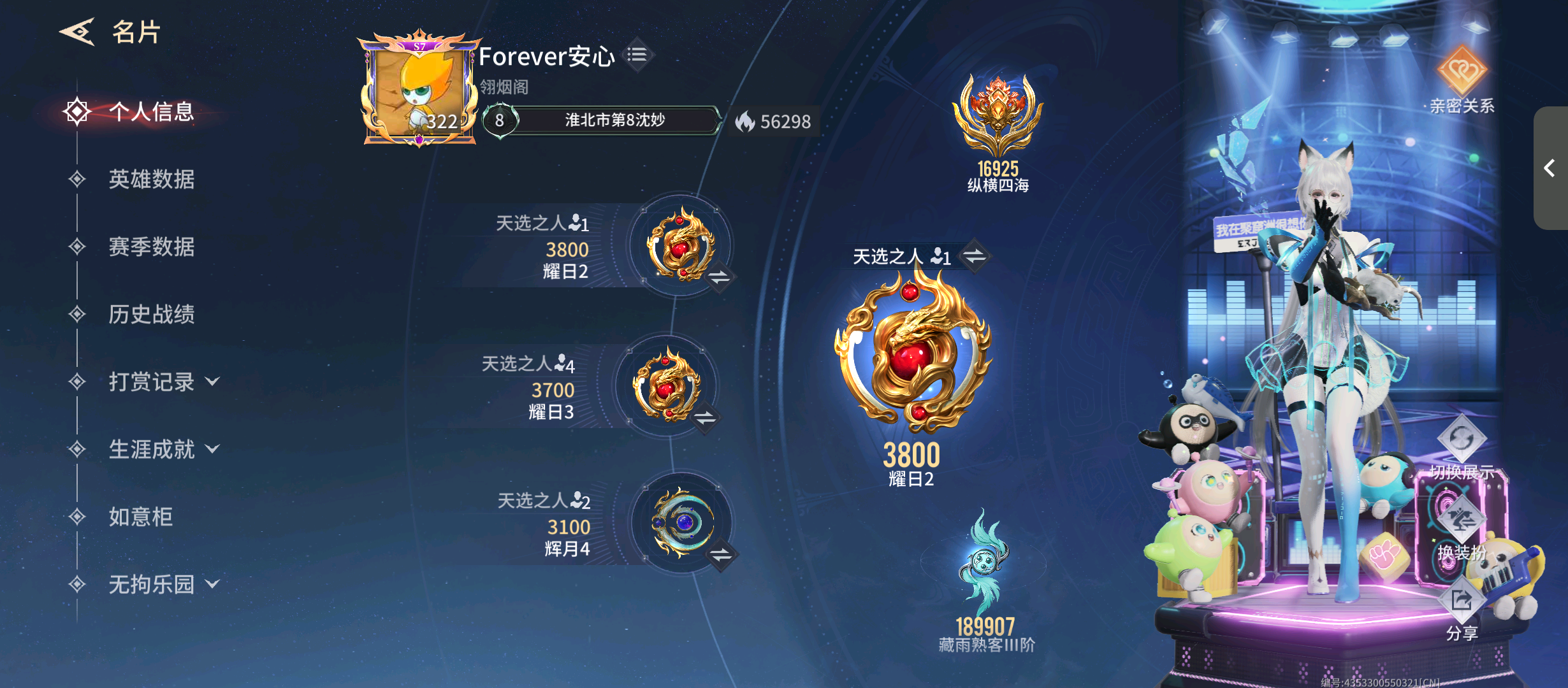 【安卓】 18万魅力值『s1赛季开服号』长期下单能改头像ID具体看描述~打广告禁言拉黑处理