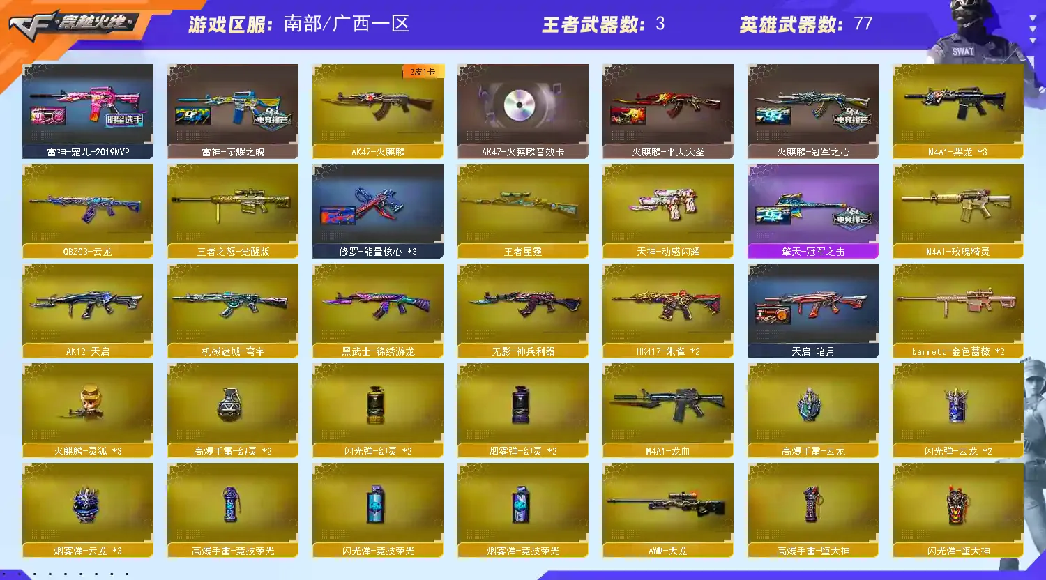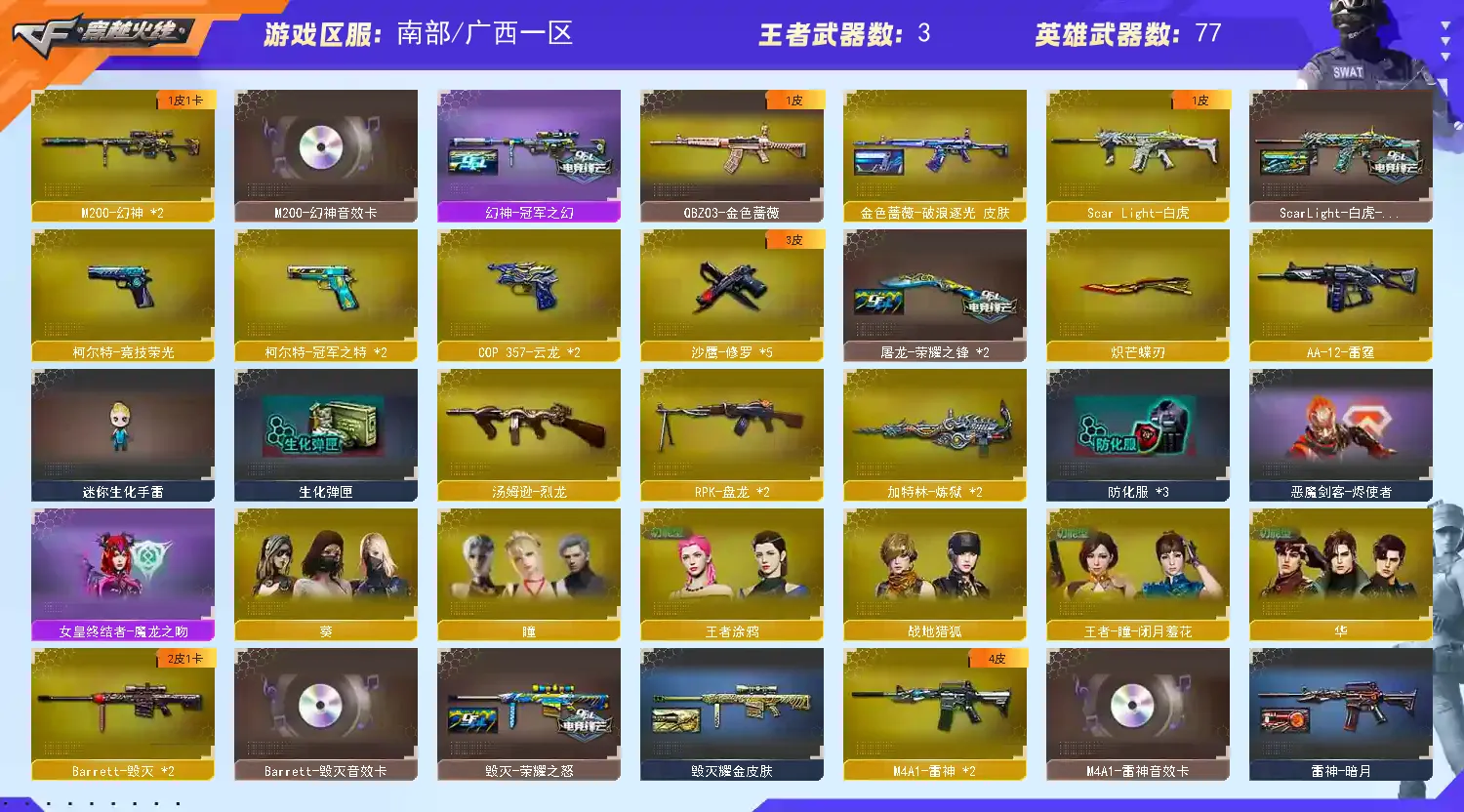 【允许排位】幻神三件套,满配手枪冠军之特,白虎王者星霆,炽芒蝶刃,毁灭三件套,潘多拉暗夜N,四防角色,禁止外挂