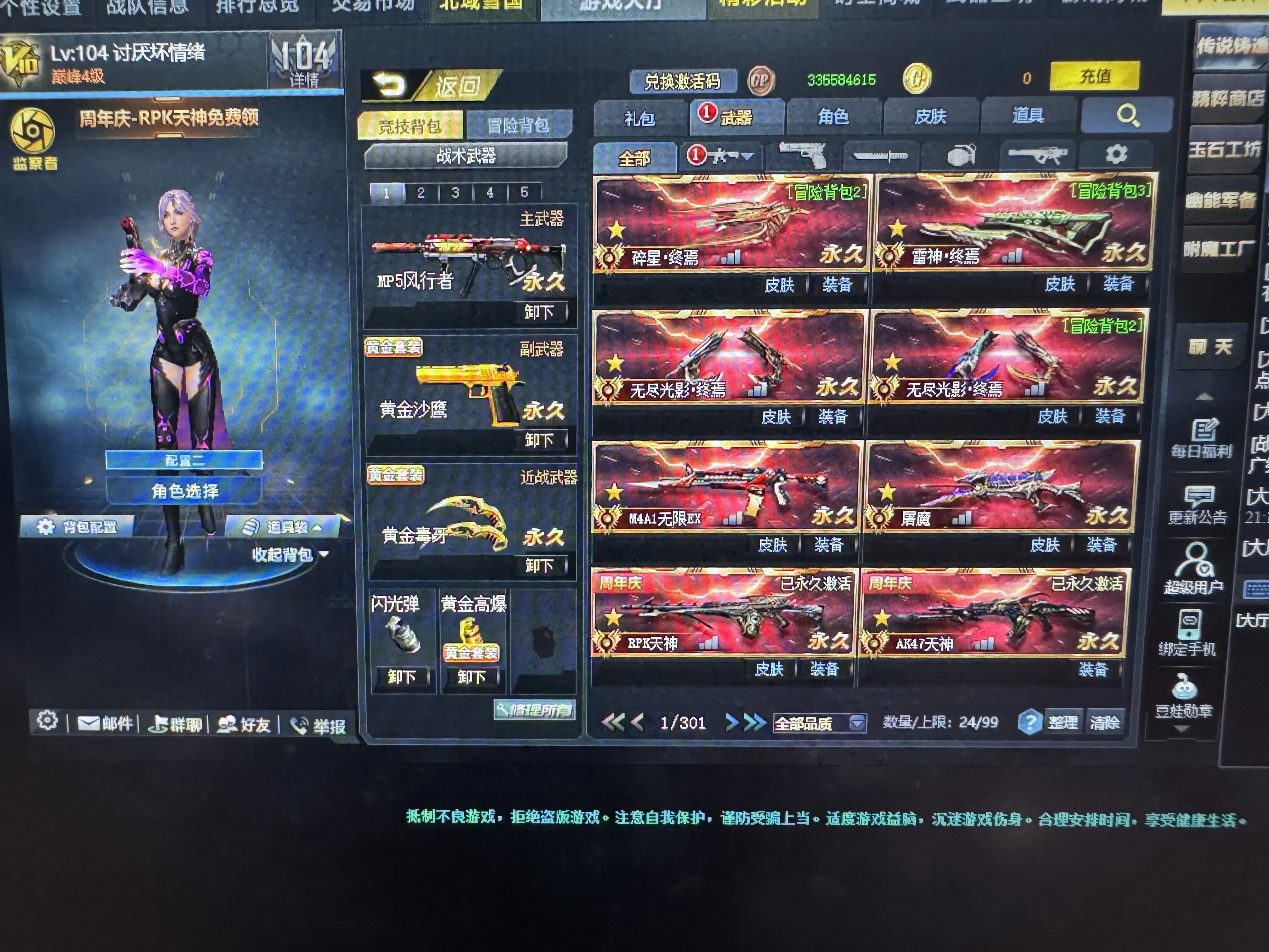 此号次元变异爽玩:新老配件齐全◆前期解锁天罚之眼/充气锤/不朽/霓虹旋风/寂静白龙/降临/风暴/含光承影◆后期解锁核子裂变/裂隙行者/炎凰+飞梭贰+撼天贰/蛇舞贰+宇宙雷贰/万象贰