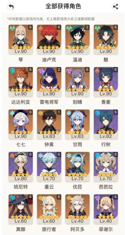 - 金角色数量: 15