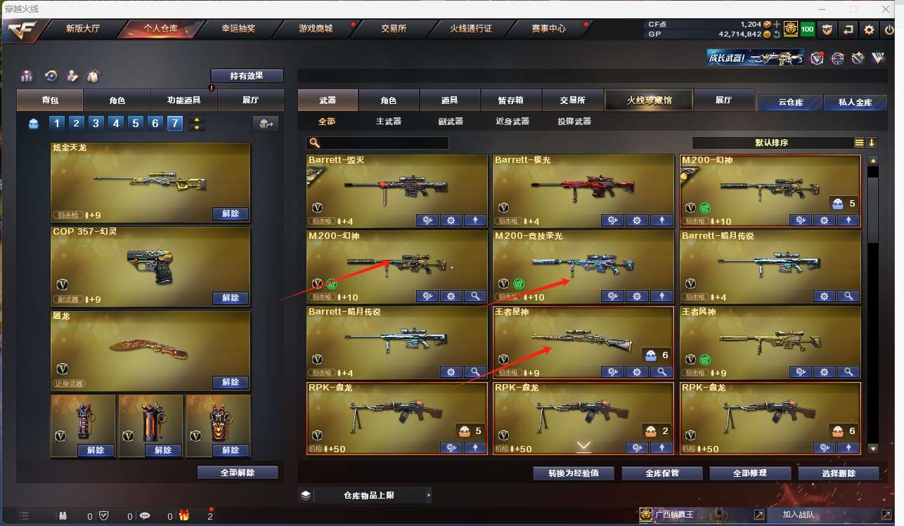禁排【亮点解析 幻神三件套 生化高配】【m200幻神*2+音效卡+电流骇客+ag17冠军】【m200竞技荣光+usp雷暴+四防云悠悠】【王者星神】【王者风神】【6黑骑士 6盘龙 5炼狱 6烈龙 斯太尔蝴蝶】【传说暗裔 传说夜影 传说圣灵】【g36c幻影】【scar白虎+卡】【qbz金色蔷薇+卡+量子蔷薇】【hk417朱雀】【火麒麟+卡】【黑龙】【雷神+卡】【黑骑士+卡】【毁灭+卡+战神张飞】【极光】 【武器:堕天神 雷暴 幻灵 王者炎心 王者火魄 王者之烈 天龙】 【12手呛:修罗*2 沙鹰天神 usp雷暴 cop堕天神*2 cop幻灵*3 柯尔特竞技荣光*2 荣耀世冠柯尔特】 【18刀具:屠龙*4 龙啸*4 擎天 麒麟刺 斩神刀雷暴 麒麟刺堕天神 幻灵之峰 擎天竞技荣光 王者之啸 王者之击】 【18雷套:雷暴雷*6 堕天神雷*6 幻灵雷*6】 【小人呛:雷神精英刀锋 雷神小红 裁决雪莉杨 炼狱小刚 马呛 】 【音效卡: 毁灭音效卡 黑骑士音效卡 幻神音效卡 金色蔷薇音效卡 火麒麟音效卡 白虎音效卡 雷神音效卡】 【四防角色:云悠悠 王者魅影 影豹 王者玲珑小乔 职业经理】