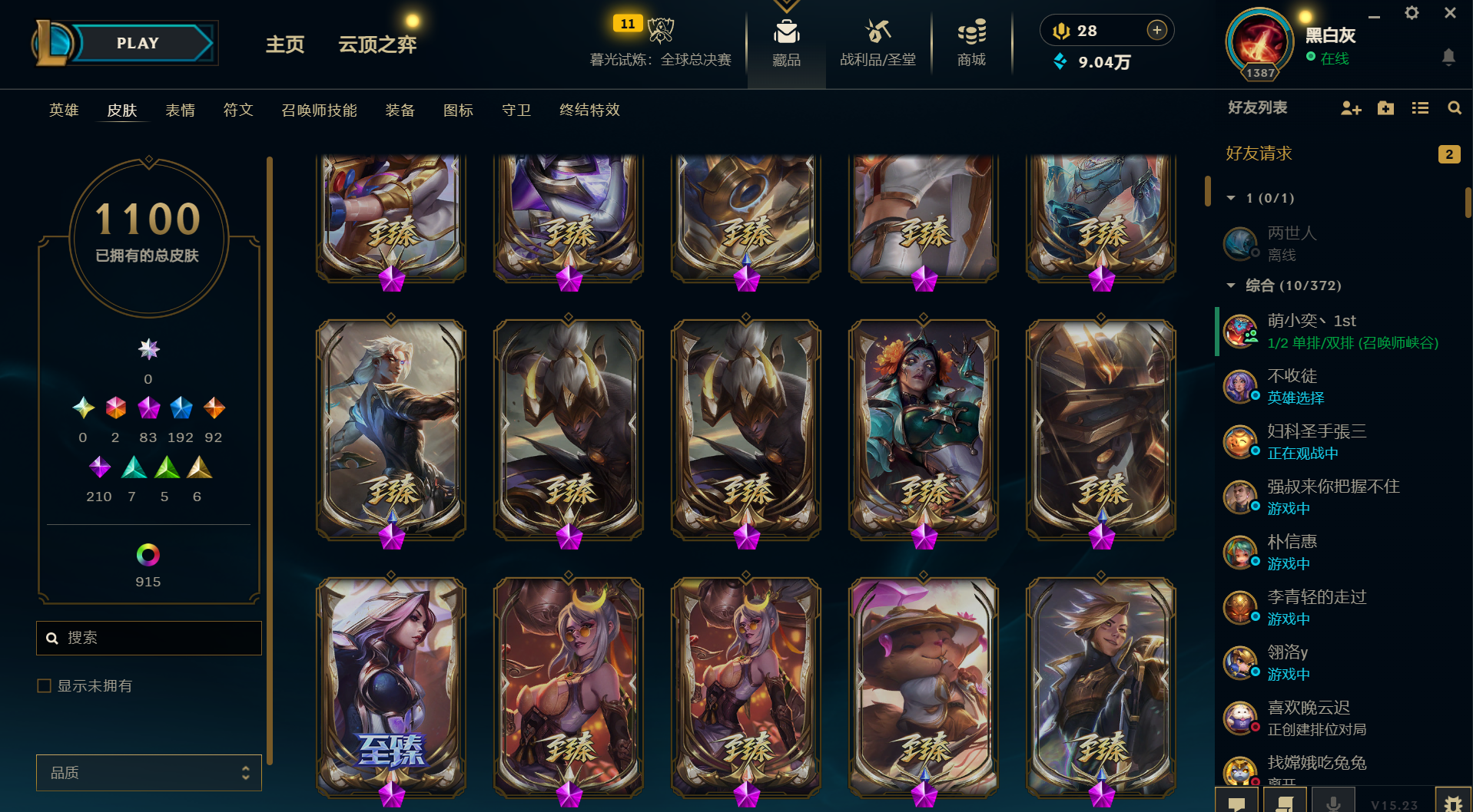 2099皮丨云顶4神话丨83神话丨黑夜吸血鬼丨黄龙虾丨IG套