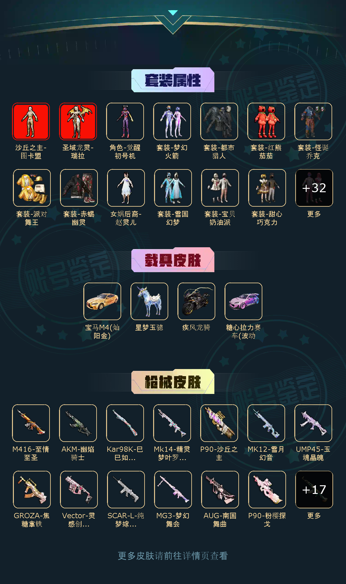 41粉,4载具,215套装,17王牌印记,无敌战神历史最高段,139963热力值 平底锅-仲夏莫吉托/AKM-绿萝繁花/M416-电玩时刻/AKM-幽焰骑士/AUG-南国舞曲/M416-心之恋语/SCAR-L-纯梦嫁纱/M416-墨龙九天/GROZA-焦糖拿铁/SCAR-L-锦绣绵绵/M416-至情至圣/AKM-梦之光华/SPAS-12-蜜语绒猫/M417-第五大道/MK12-雪月幻音/Mk14-精灵梦叶罗丽/MG3-梦幻舞会/M249-猪猪侠/DP-28-豹影疾电/AKS-74U-信仰神谕/P90-粉樱探戈/Vector-灵感创作师/UMP45-雪国精灵/P90-沙丘之主/UMP45-玉魂晶魄/烟雾弹-猫咪绅士/破片手榴弹-粉粉猫爪/Kar98K-巳巳如意/AMR-炫光之旅/M24-莲影清波/宝马M4(灿阳金)/糖心拉力赛车(波动紫)/星梦玉骢/疾风龙骑/