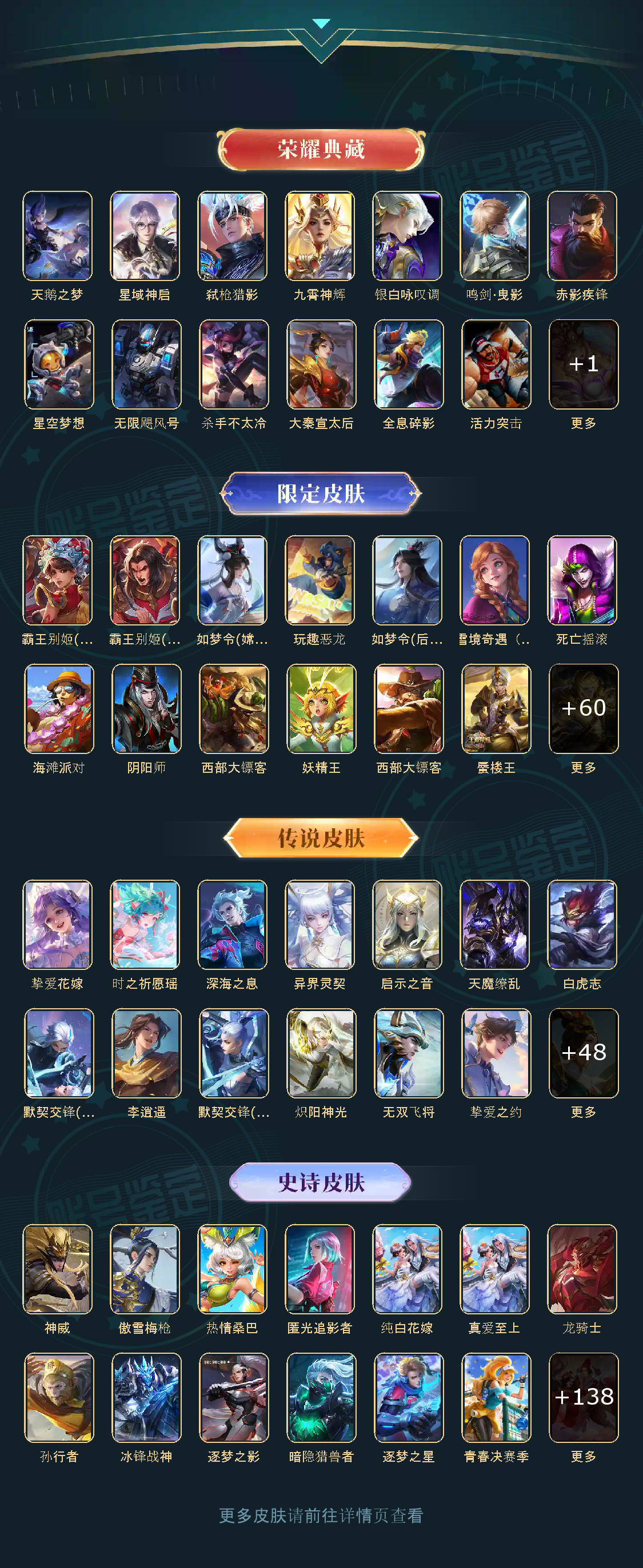 贵族等级V10,英雄数量123,典藏皮肤数14,皮肤数量460,
