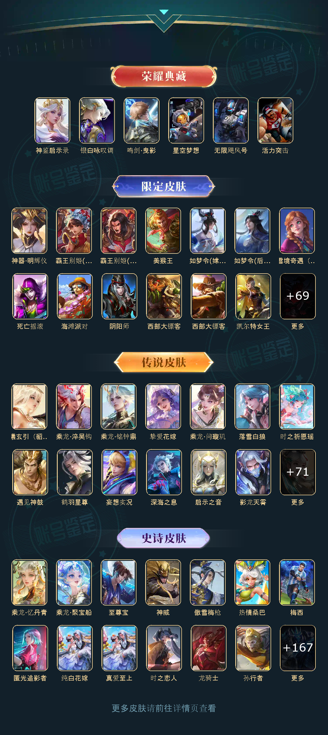 贵族等级V10,英雄数量123,典藏皮肤数5,皮肤数量520,