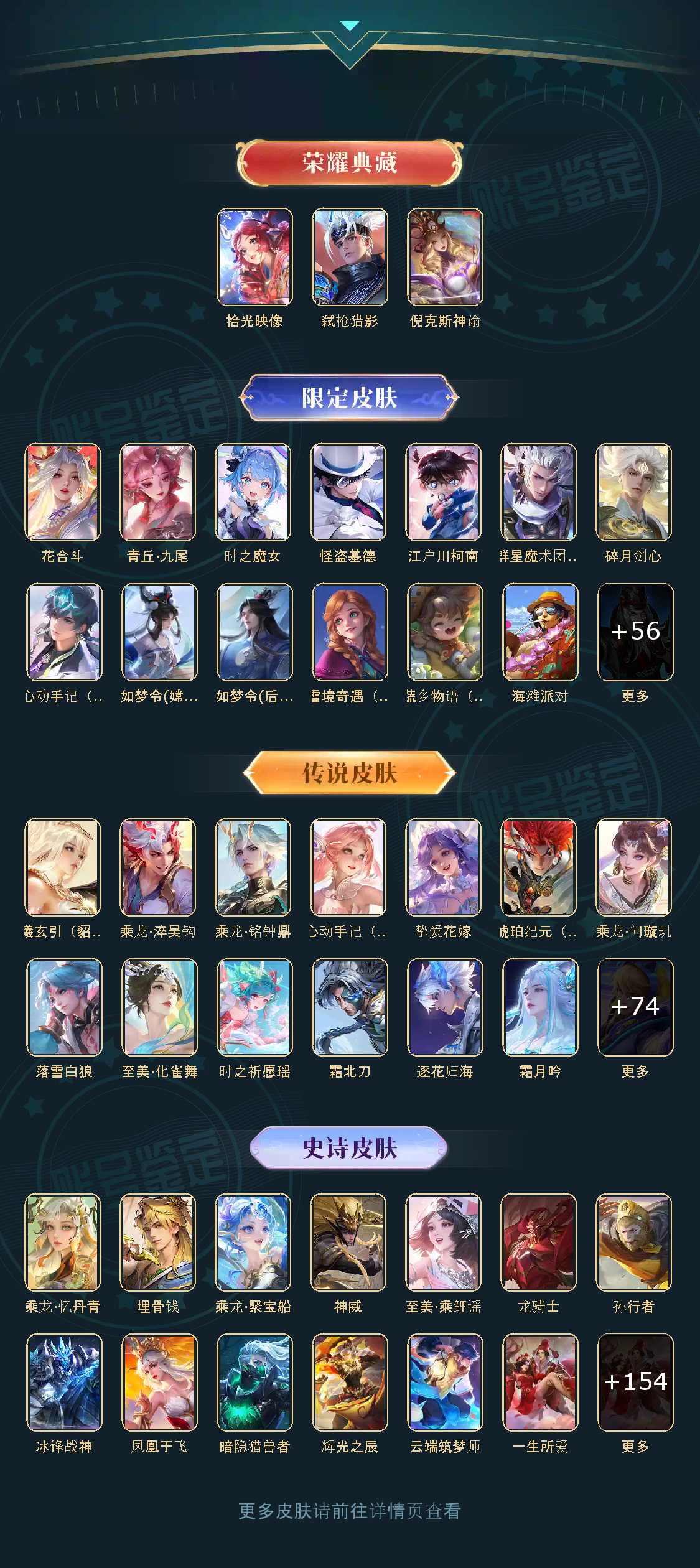 贵族等级V9,英雄数量125,典藏皮肤数3,皮肤数量502,