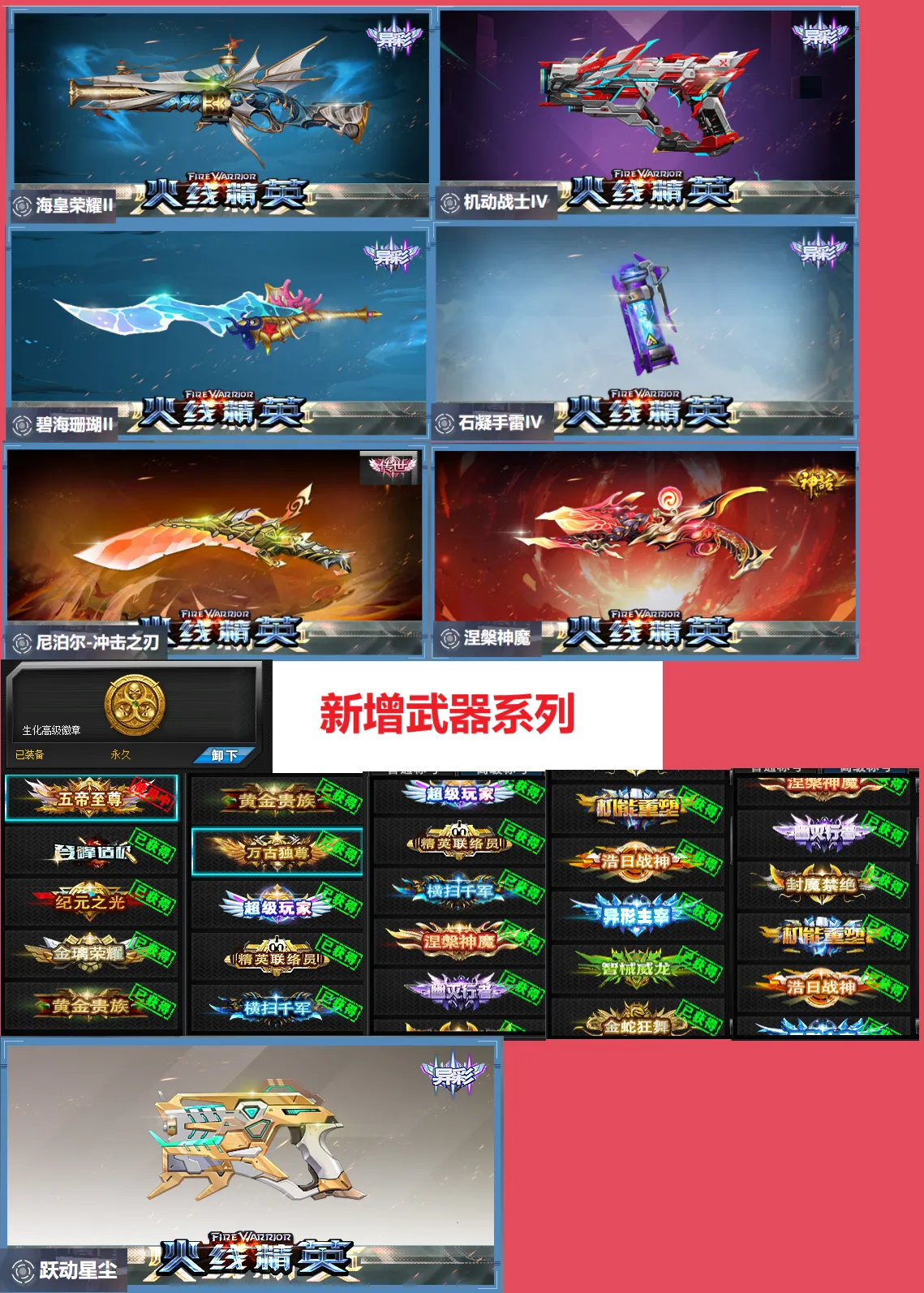 血清生化高级勋章新增跃动星辰,逆鳞烈影狂狮炽炎朱雀封魔回响浩日战神龙域,涅槃神魔狱龙破地狱浩劫阿喀琉斯空之镜星陨天鳞卡牌,赤血毒牙海皇双子座海滩套猫狗套,破晓君灭世骸骨真龙波塞冬电磁枪逆鳞,金甲命运纪元赵云套貂蝉刚翼毁灭之眼猎枭S,夜莺先锋号幻世狮子白羊金牛天秤水瓶处女嘉年华院长手炮,冰与火黯晶套,护臂星流毁灭装置血与光豹宝羊枪机动战士射手座合金风暴闪灵,星战月影星辉鎏金铳刃青花瓷,希望圣光幽灭之息冲击之刃风云劫争炙金冲决,海王戟龙胆枪夺魂之镰双镰嗜血魔剑闪击之刃,圣龙之牙碧海珊瑚巨蟹座幽冥狂射兔兔典韦像素剑信标命运骰铸离子裂变光晕碎星灭石凝手雷,全异彩黄金贵族五帝至尊李吒贝瑟悟空男女亚瑟毁灭公爵足球宝贝,狂想骑士幻术师狐小妖盾哥阴阳双子年兽小丑兰图痛苦女王路西法阿巴顿,血清。。