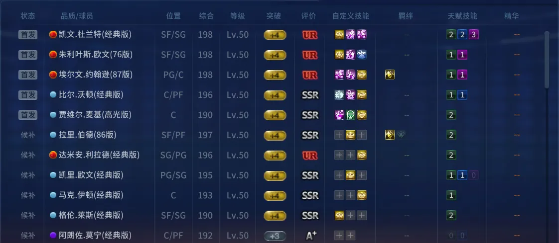斯台阿杜❤️UR杜兰特❤️UR魔术师❤️欧文❤️利指导SSR沃顿、麦基、欧文、莱斯等 技能全 新授权