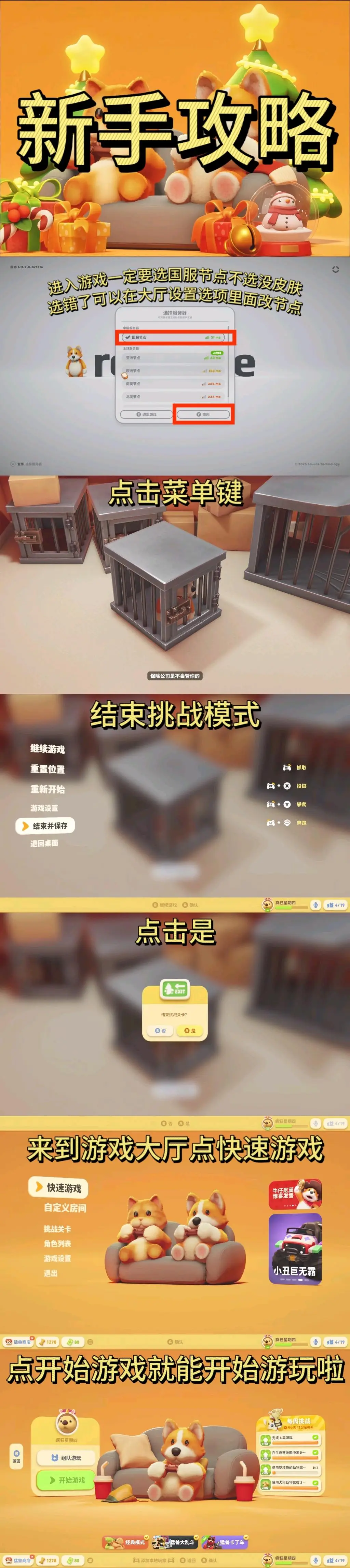 【跳过新手教程】首次进入游戏时点菜单,再点结束并保存可以跳过新手教程,进入大厅点击快速游戏即可开始匹配在线玩家。