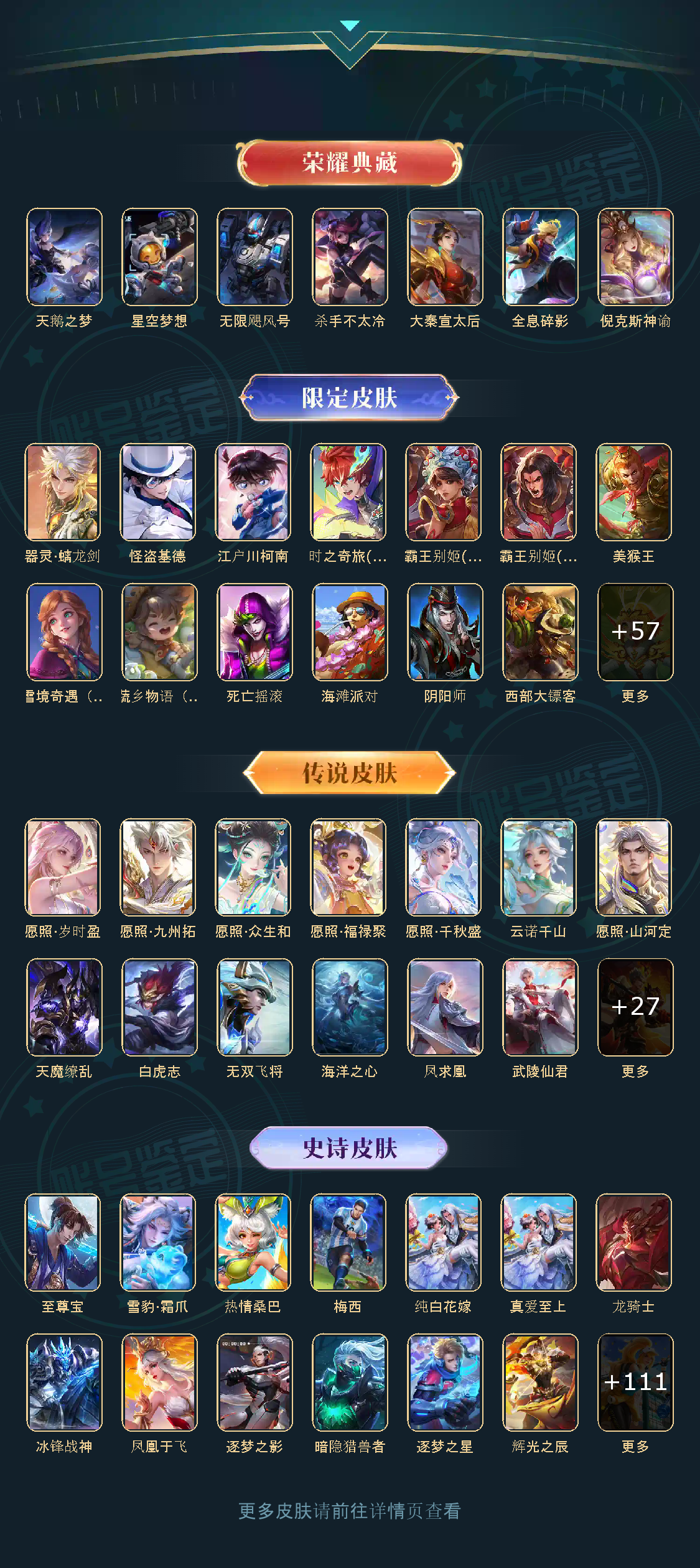 贵族等级V10,英雄数量125,典藏皮肤数7,皮肤数量417,