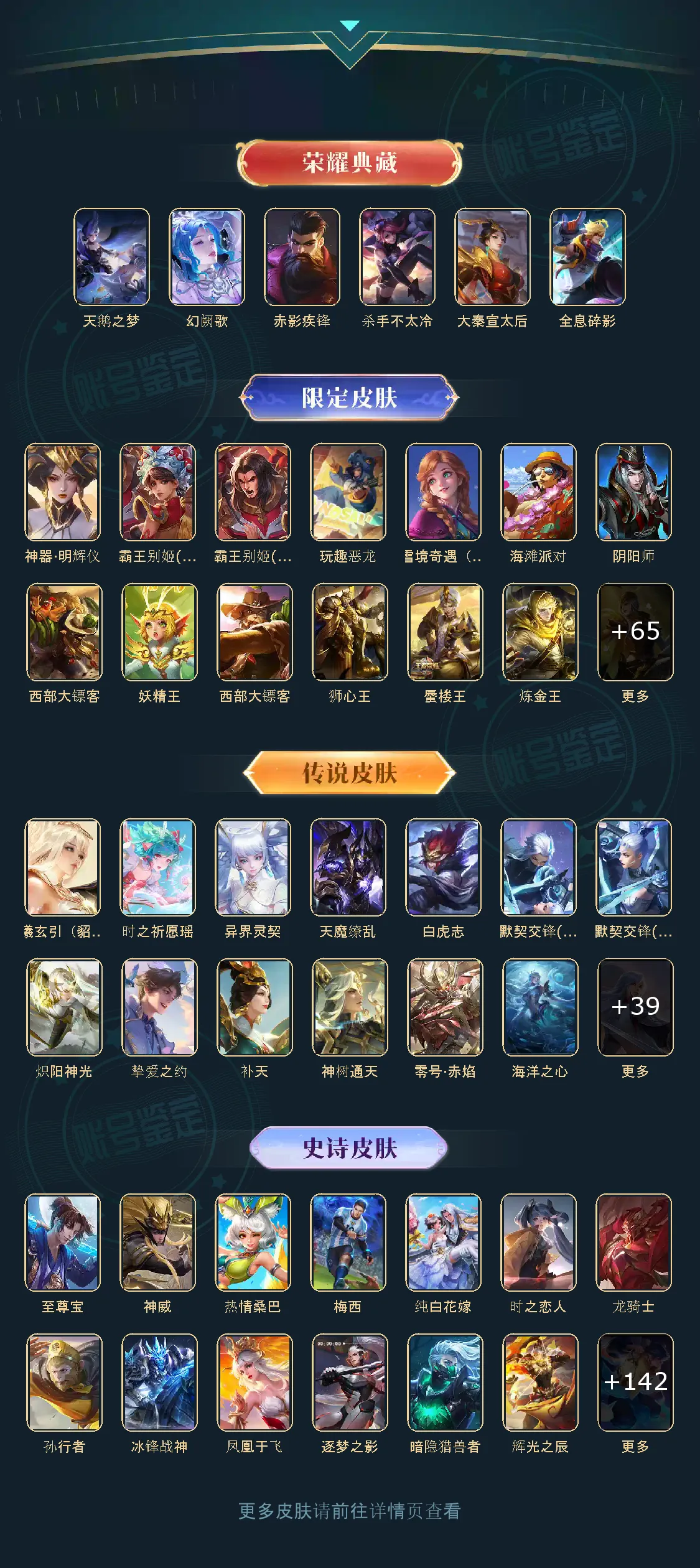 贵族等级V10,英雄数量125,典藏皮肤数5,皮肤数量453,