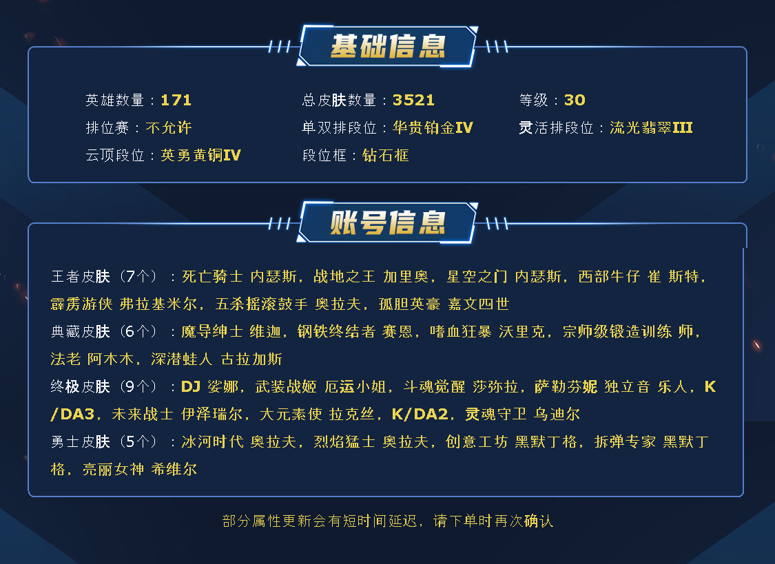 艾欧尼亚角色等级1624/钻石阶/1539皮肤/1945炫彩/74臻彩