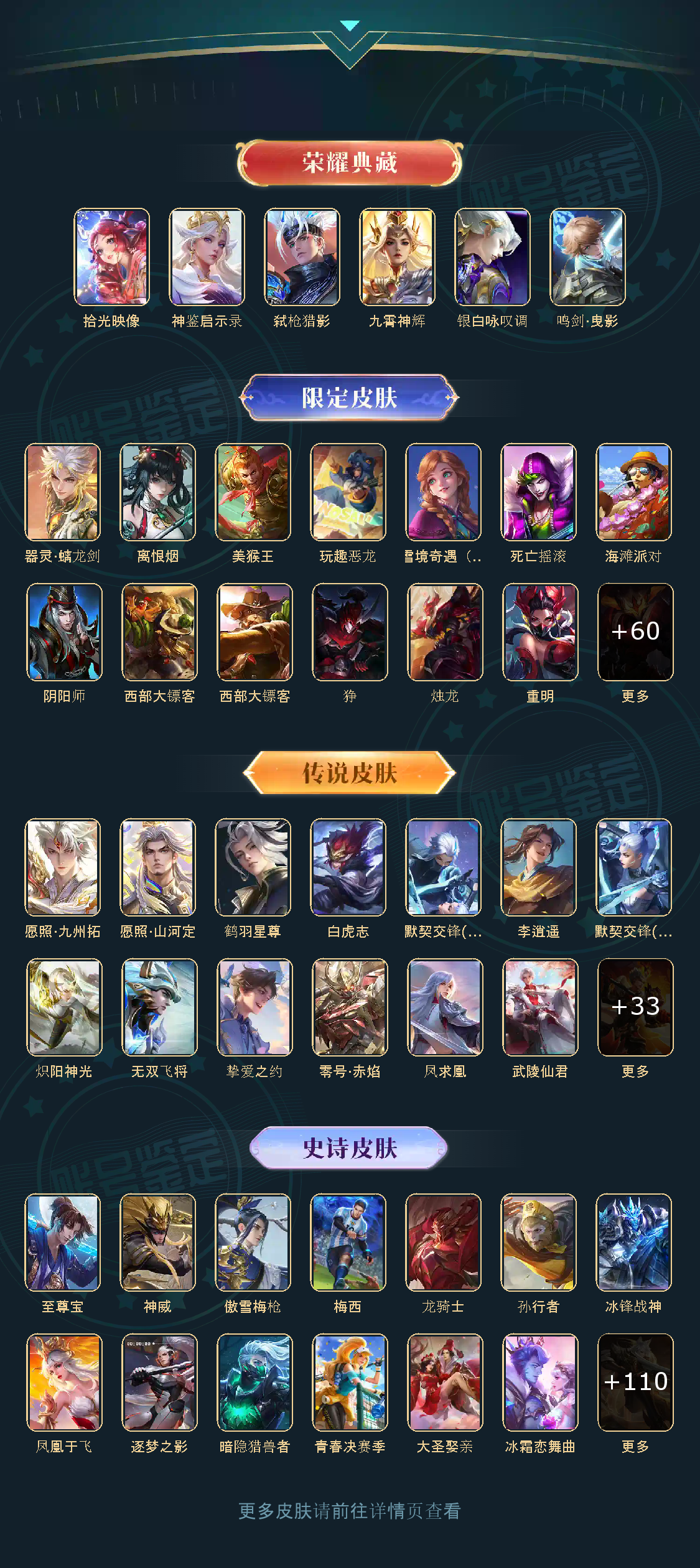 贵族等级V10,英雄数量123,典藏皮肤数6,皮肤数量422,鸣剑·曳影