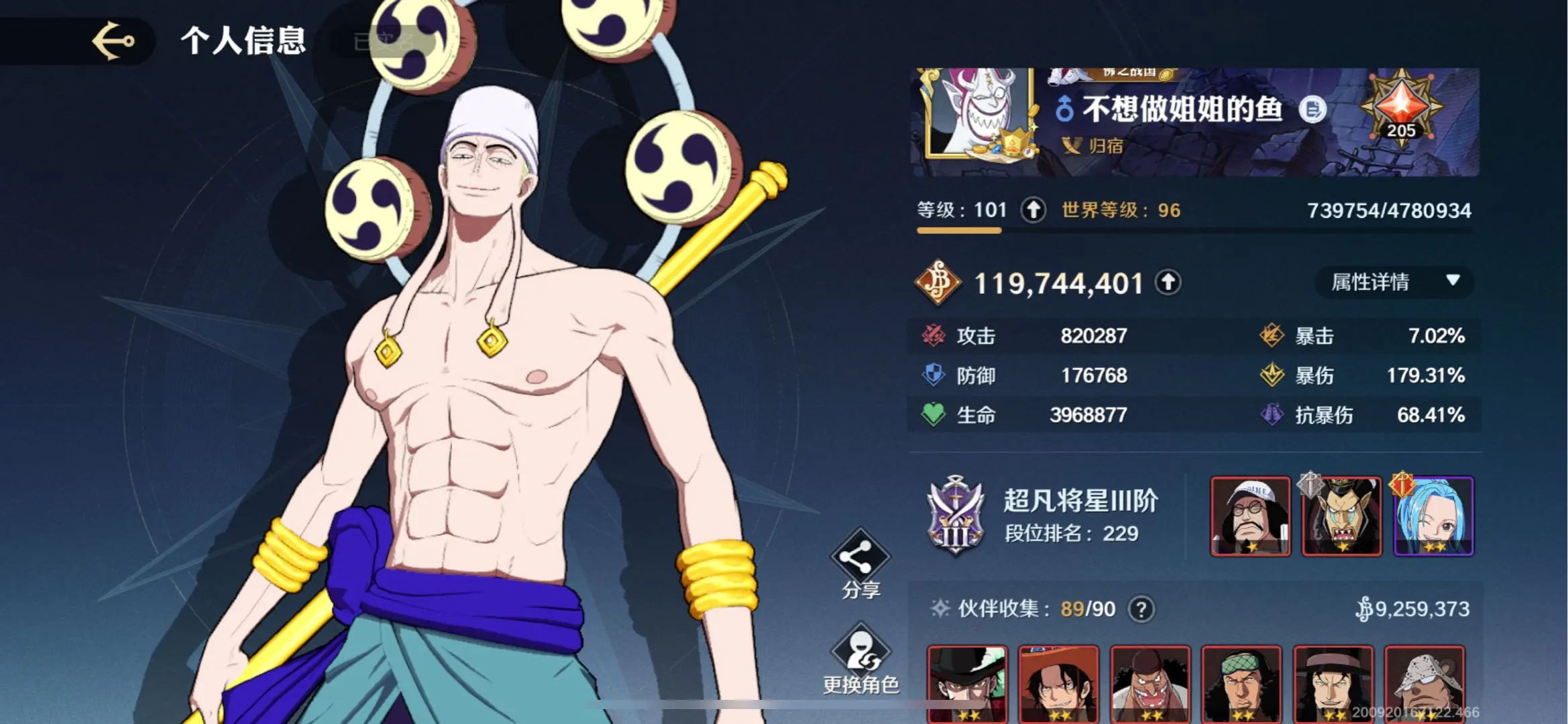全时装只差卡普❤89伙伴❤1亿1900万赏❤战国❤黄猿❤罗❤路奇❤黑胡子❤伊娃科夫❤麦哲伦❤艾斯