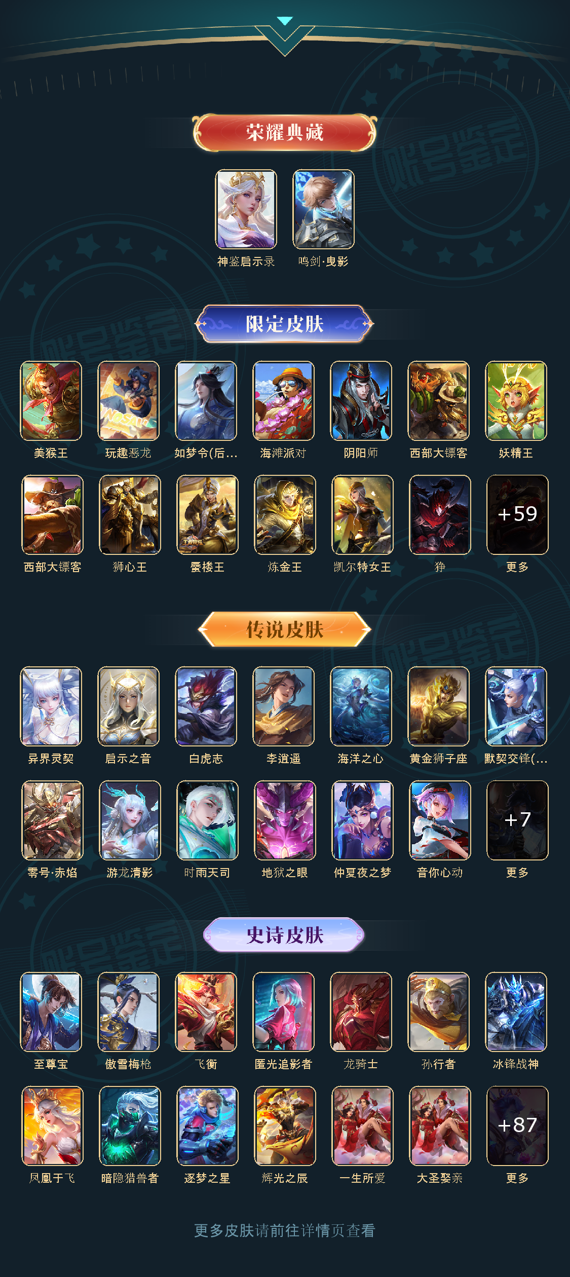 贵族等级V10,英雄数量123,典藏皮肤数2,皮肤数量332,至尊宝/白虎志/朱雀志/鸣剑·曳影/李逍遥/武圣/异界灵契/启示之音/傲雪梅枪/时雨天司