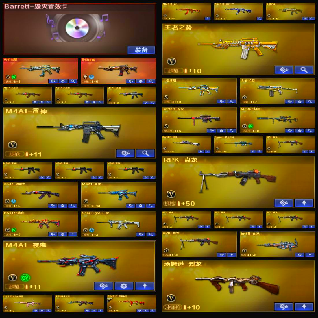 传说暗裔/传说光耀/幻神周瑜/毁灭耀金/毁灭风暴/巴雷特SV/火麒麟传奇EVEN/火麒麟平天大圣/火麒麟心动糖果/刘备/孙权/曹操/_凌霄/M200-幻神/Barrett-毁灭/Barrett-暗月传说/Kar98K-星神/M4A1-青龙/夜魔套装/M200-幻神音效卡/M4A1-黑骑士音效卡/Barrett-毁灭音效卡/AK47-火麒麟音效卡