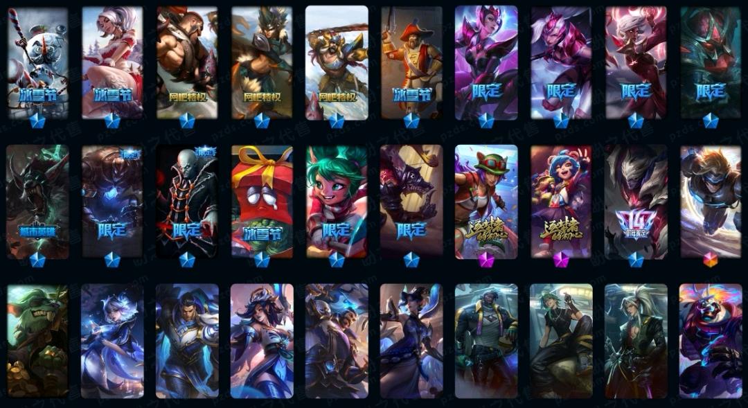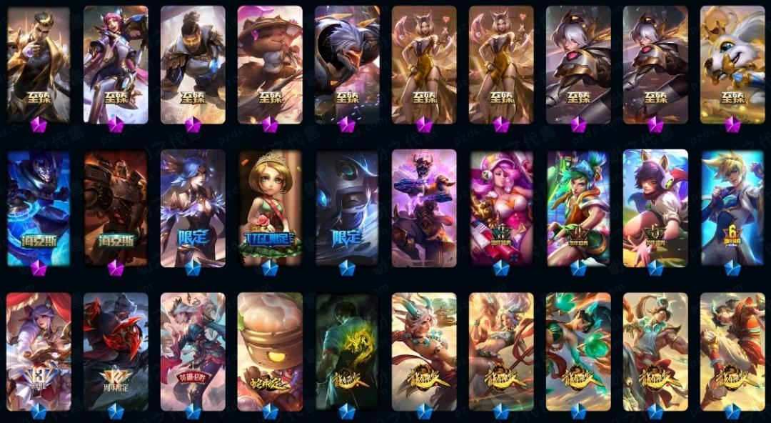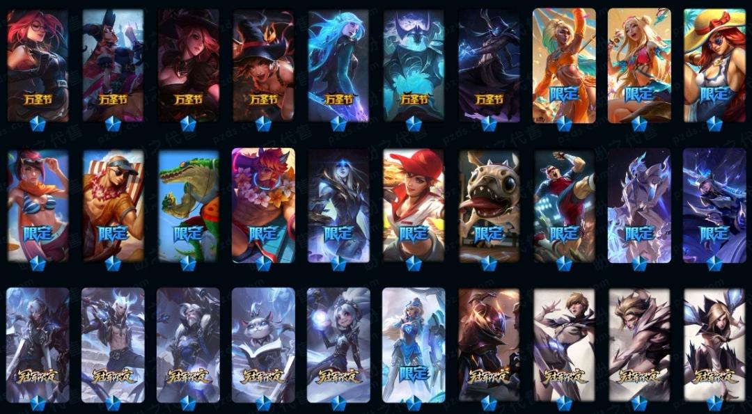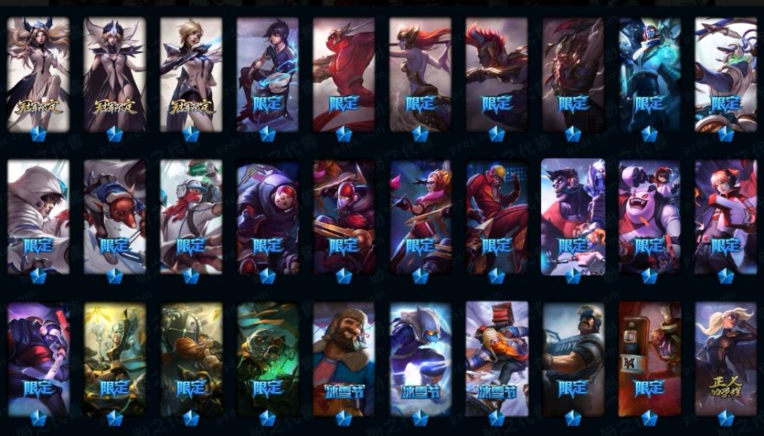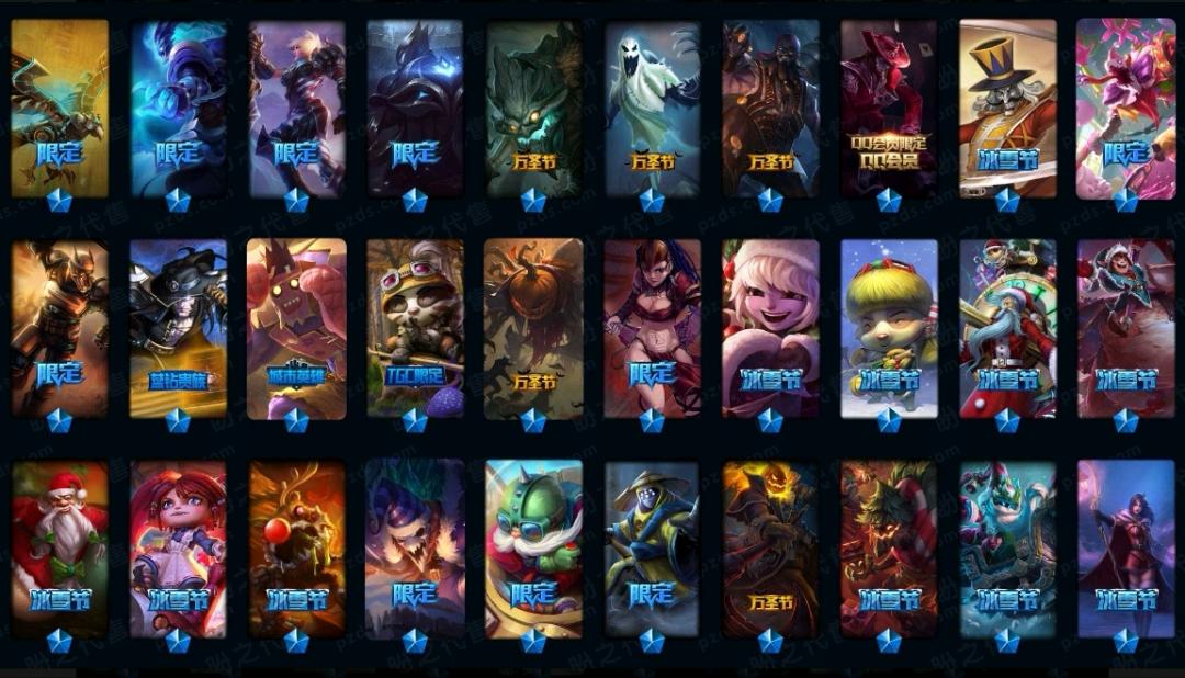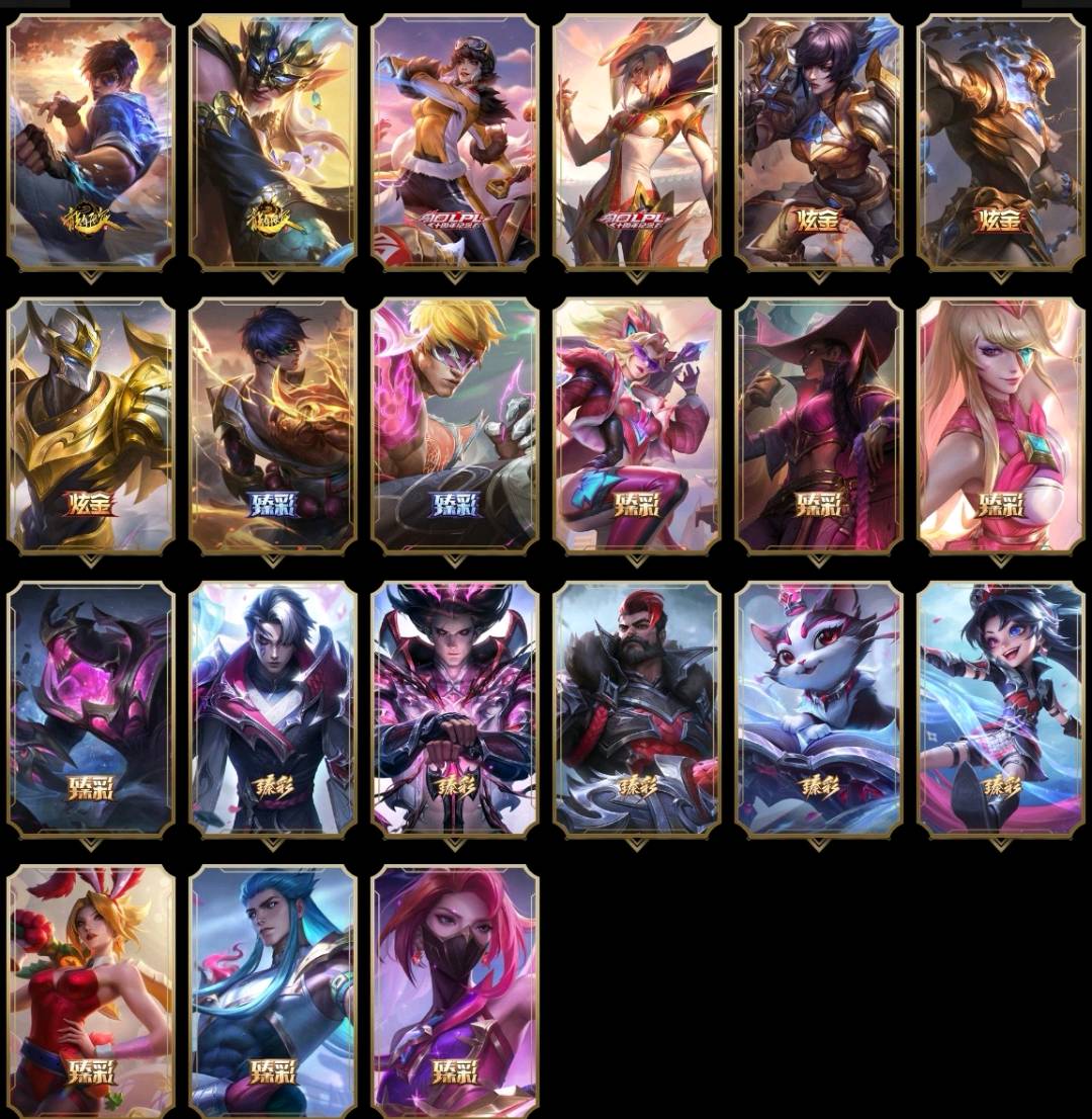 【传说皮肤】邪鸦魅影乐芙兰 血石领主弗拉基米尔 霸天零式赛恩 黎明使者永恩 黯晶凤凰艾尼维亚 女主播迦娜 黑夜使者亚索 战斗学院伊泽瑞尔 西部天使赛娜 驯龙炮手崔丝塔娜 星之守护者金克丝 源计划联合艾希 苍穹之光韦鲁斯 黎明使者锐雯 欧米伽小队幽灵特工 上古战魂魔腾 女警狙击凯特琳 源计划超体莫德凯撒 电玩女神娑娜 战斗学院凯特琳 青花瓷伊泽瑞尔 奥德赛凯隐 光明哨兵薇恩 真实伤害艾克 至高天派克 灵魂莲华锤石 提莫约德尔人的一大步 暗星尊烬 影执事劫 冰川巨兽墨菲特 陆地王者4WD布里茨 焰尾妖狐阿狸 源计划林易 枯萎之壤泽拉斯 地狱行者孙悟空 星之守护者洛 烈焰雄心崔丝塔娜 战地巨兽科加斯 金牌主播德莱文 苹果机器人布里茨 神龙尊者圣龙李青 恶魔之刃泰达米尔 泳池派对吉格斯 蔷薇绅士杰斯 钢铁之翼凯尔 铁哥们儿奥拉夫 大天使长米迦勒凯尔 魔幻卡牌崔斯特 绅士科加斯 符文战熊沃利贝尔 天煞劫 最终BOSS维迦 黯黑魔龙希瓦娜 宇航员诺提勒斯 律政大亨蒙多 双重冰晶艾尼维亚 地狱之门卫士加里奥 偶像歌手阿狸 女皇艾希 合金巨兽努努和威朗普 未来战士凯特琳 女校长菲奥娜 红色男爵库奇 神拳李青 星之守护者拉克丝 战场女武神凯尔 死亡骑士盖伦 第三类接触黑默丁格 恶魔男爵瑞兹