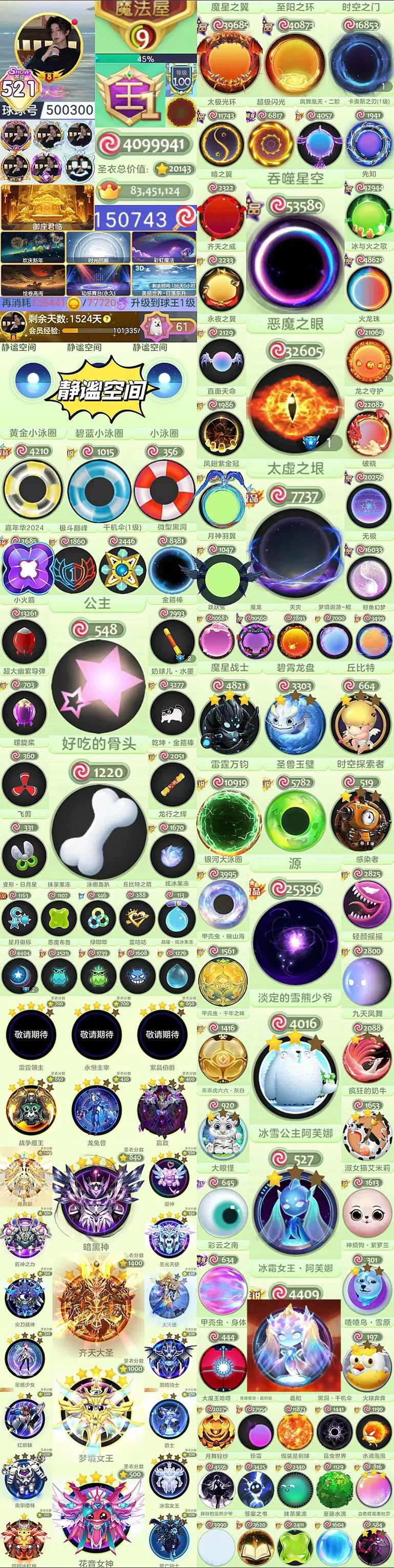 静谧空间*521秀410万皮千天年卡七彩阿芙娜公主袍子幻化黑洞时空恶魔之眼黄金泳圈骨头丘比特幻化雷霆