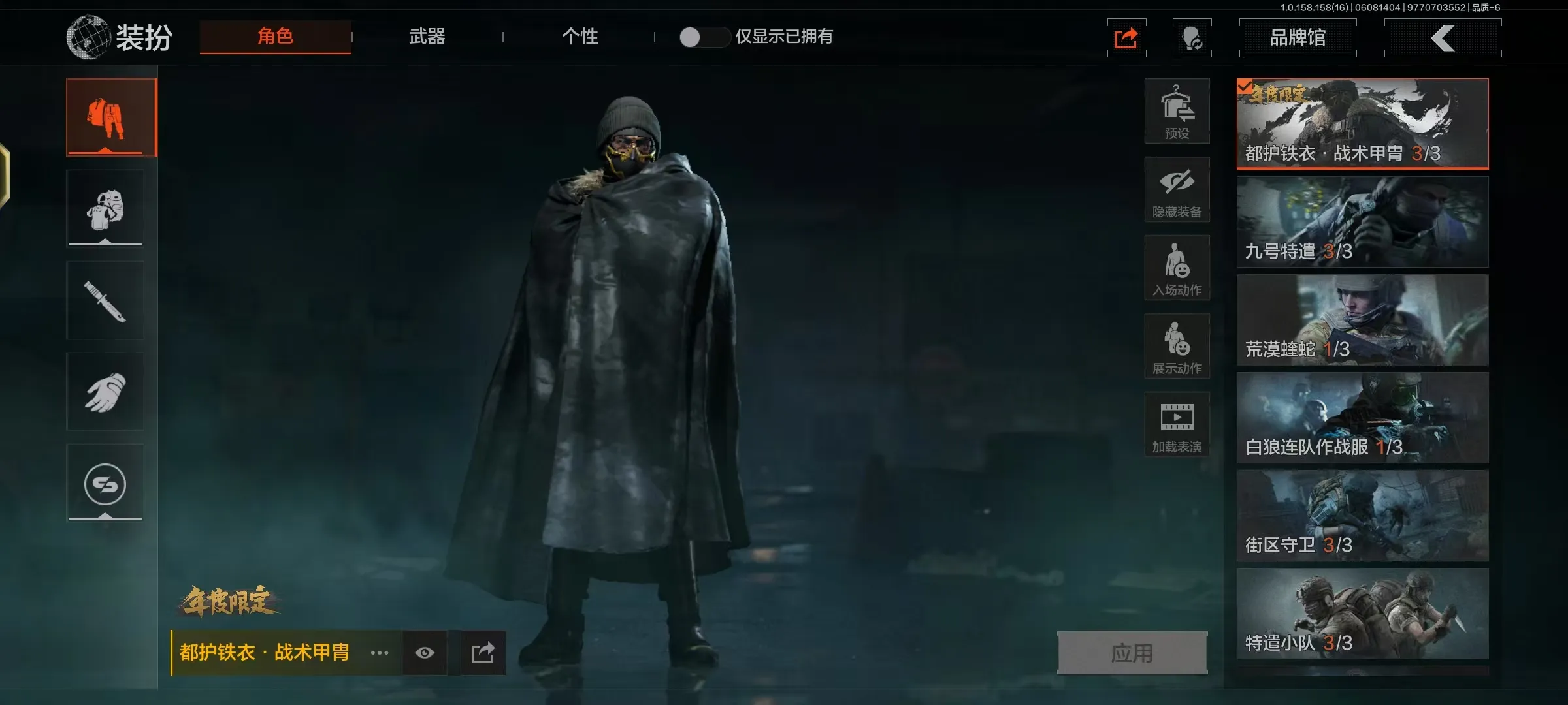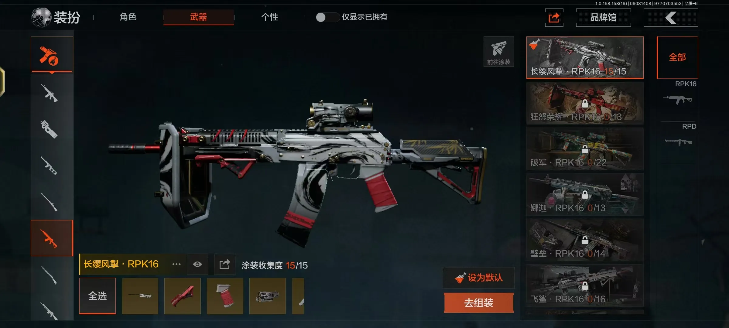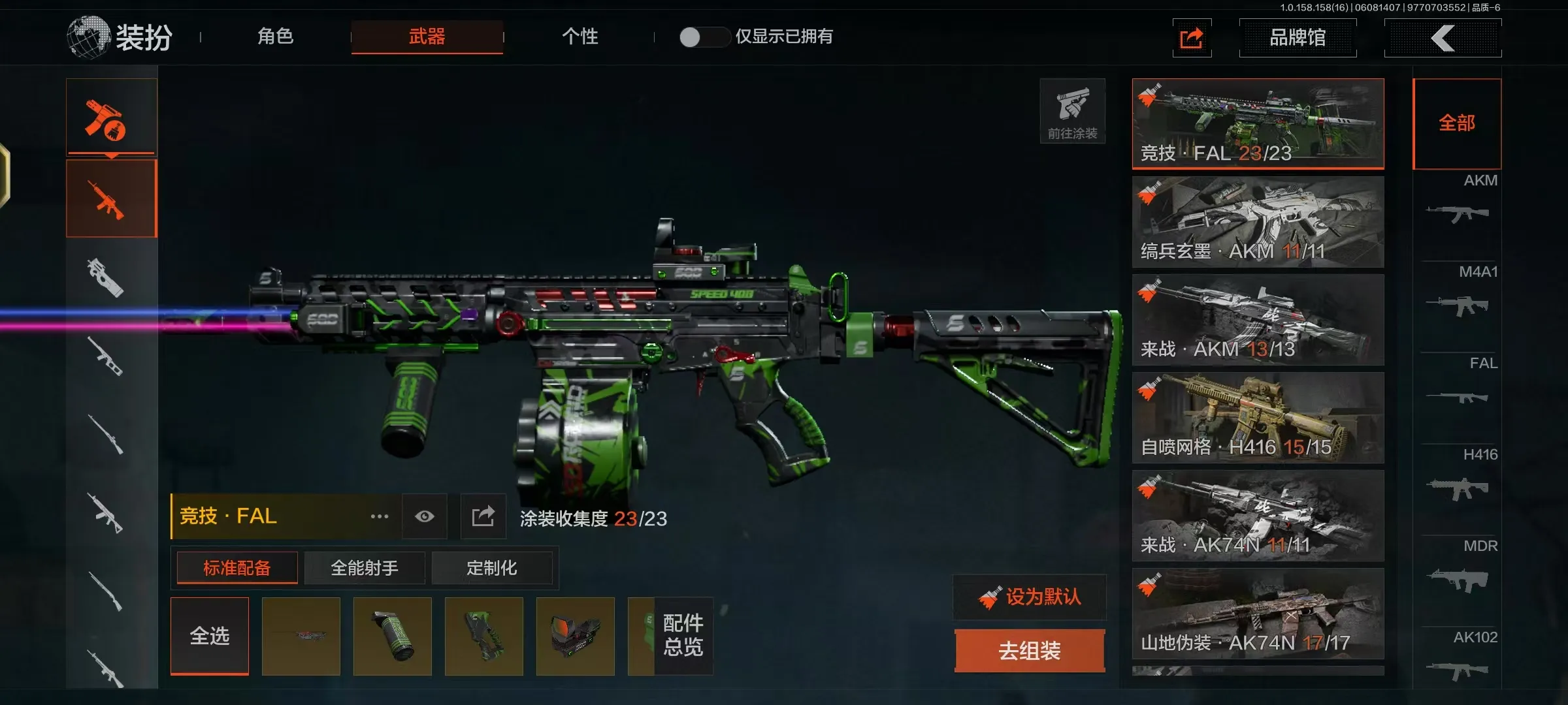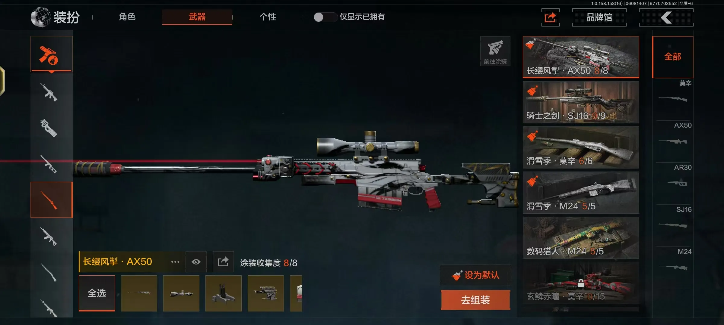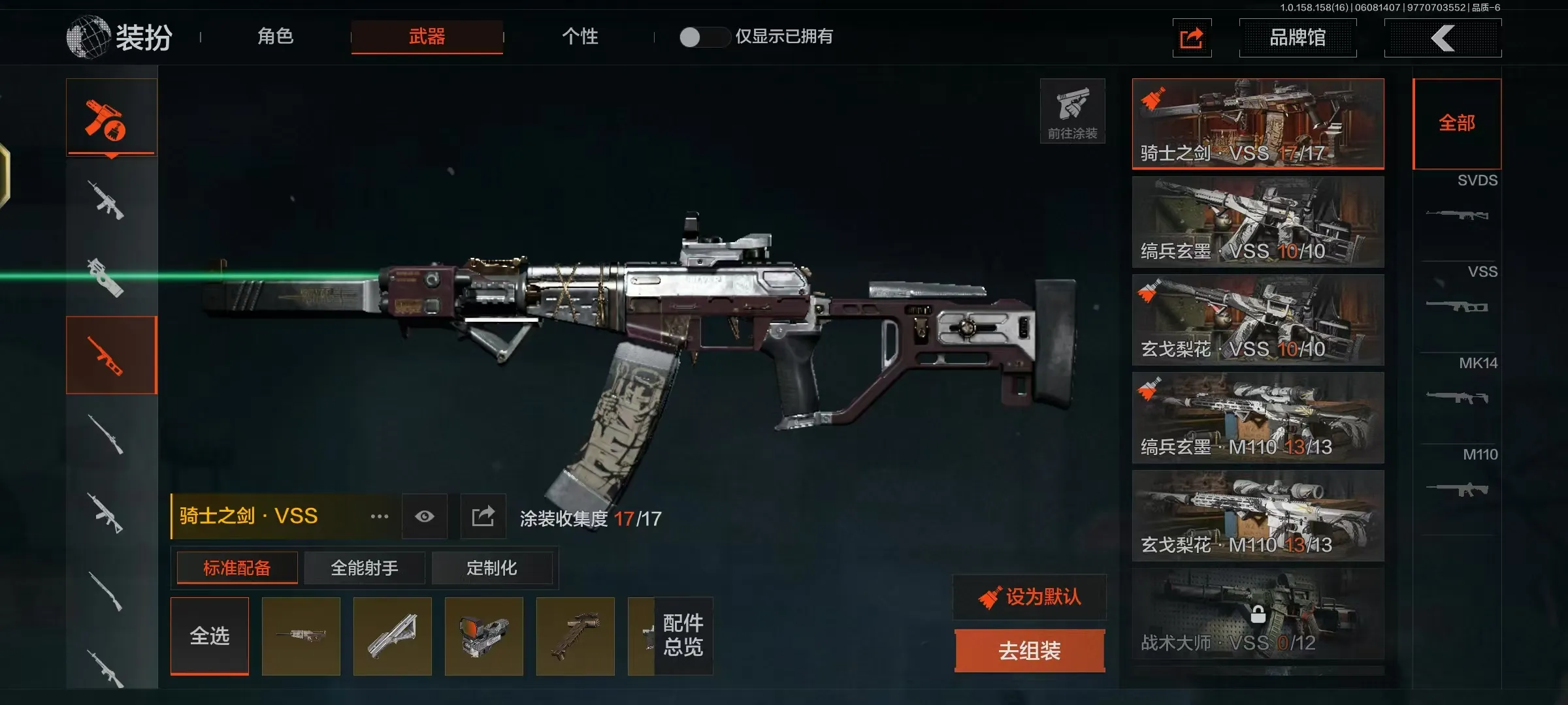 【角色皮肤】:都护铁衣战术甲胄,九号特遣,街区守卫,特遣小队;【装备涂装】:都护铁衣装备组合包,瀚海军行Ⅱ装备组合包,瀚海军行装备组合包;【近战武器】:三尺万仞战术剑,寒牙手刺,突击匕首,工兵铲,来战开山刀;【突击步枪】:竞技FAL,缟兵玄墨AKM,来战AKM,自喷网格H416,来战AK74N,山地伪装AK74N,火绒草AUG,雪山之王F2000,涂绘猎人AR57,骑士之剑ACE31,湖冰倒影ACE31,缟兵玄墨T03,玄戈梨花T03,林地数码T03,07式林地迷彩QBZ191,竞技数码AK74N,白狼连队AK74N,坚守AKS74U,北国内卫AK12;【冲锋枪】:缟兵玄墨MPX,玄戈梨花MPX,雪山之王MPX,灰鼠幻歌P90,滑雪季UMP45,自喷网格UMP45,山地伪装Vector9,竞技Vector9,滑雪季Suomi;【射手步枪】:骑士之剑VSS,缟兵玄墨VSS,玄戈梨花VSS,缟兵玄墨M110,玄戈梨花M110;【栓动步枪】:长缨风掣AX50,骑士之剑SJ16,滑雪季莫辛,滑雪季M24,数码猎人M24;【轻机枪】:长缨风掣RPK16;【霰弹枪】:无畏USAS12,真实之眼SPR310,无畏USAS12,胜利锋刃S12K,水陆迷彩S12K,营房暖冬USAS12,雪地数码USAS12,真实之眼SPR310;【卡宾枪】:滑雪季BM59;【手枪】:雪山之王G18C,滑雪季F57,碳黑M300;【手套】:玉鸾挂枝手套,角弓得控手套