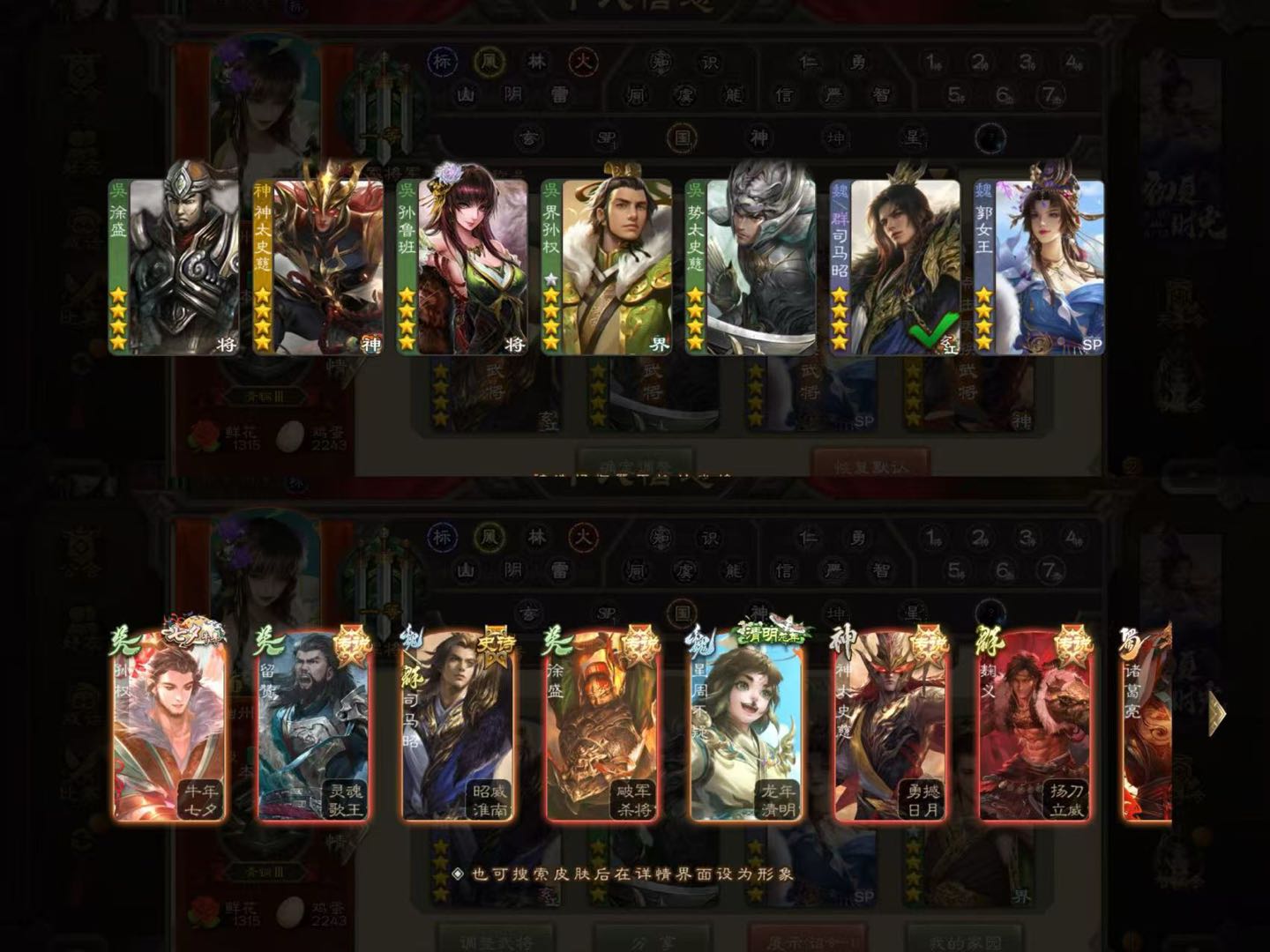 势太史慈/双形态司马昭/回廊神太史慈/郭女王/回廊白马/神赵云/花花/星周不移/沙摩柯