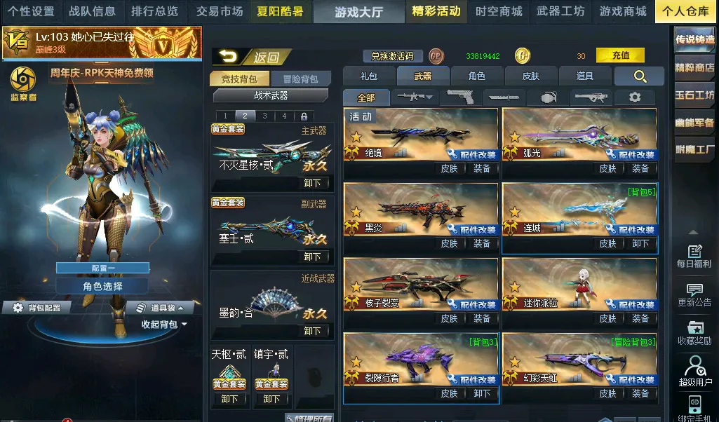 英雄:满藤木(黄金皮)✨满绝境✨满弧光✨满核子✨满派拉✨满裂隙✨满夜宵✨满末世✨约满终末✨满岚翼✨满白龙满连城✨满幻彩(粉色点缀)✨满伏虎✨23灵狩(可开盾)✨满幽冥✨满玄天✨满轮回✨满幻锋(月华)✨124浪淘沙✨魔方贰✨