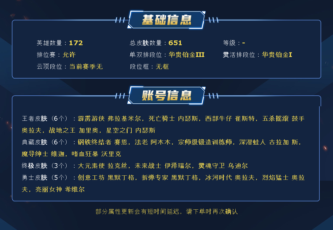 联盟一区丨守望之海丨全英雄丨645总皮丨可排位可炸鱼丨未来战士丨灵魂守卫丨大元素使丨请勿挂机谢谢