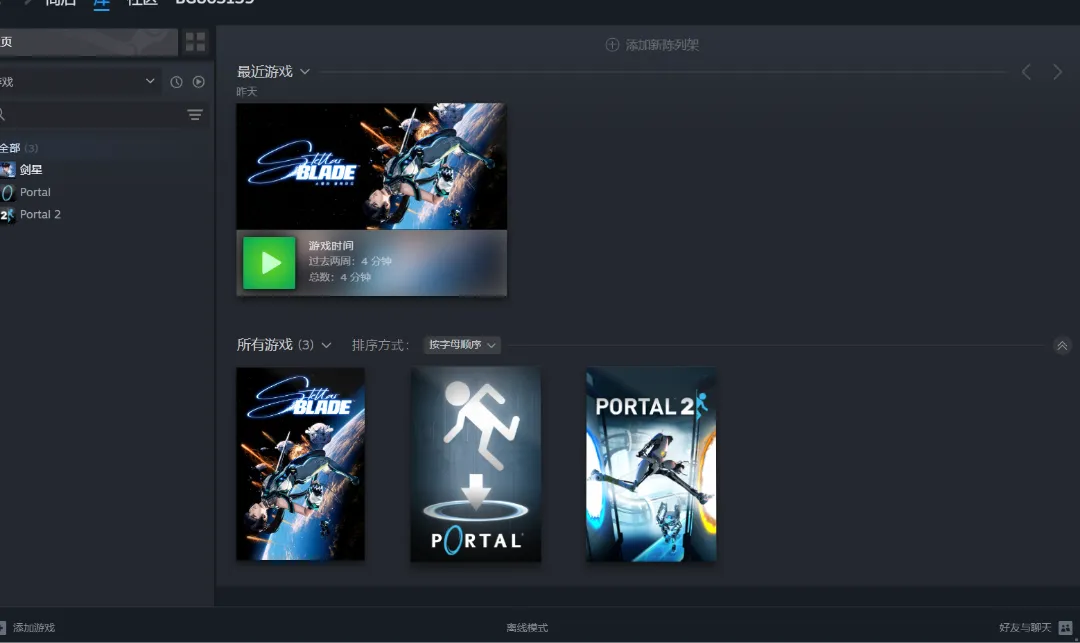 (必须使用平台登号器登录,开游戏加速器加速steam避免登录超时)登入下载完,(不能打开的上线打开一次剑星,再退出游戏)按照图片进离线模式再一次