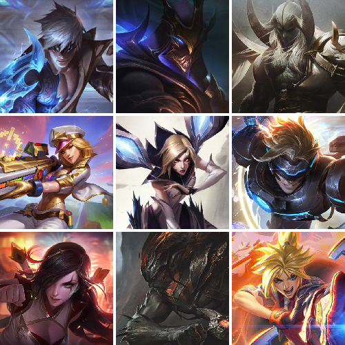 【重要头像】爱情鸽 我麦是开的么 魔女卡蜜尔炫彩 青花瓷拉克丝炫彩 万圣节莫甘娜 小猎 可爱悠米 可爱安妮 剪纸仙灵艾瑞莉娅 神龙烈焰金克丝炫彩 战斗学院伊泽瑞尔神话炫彩 太空律动布里茨 太空律动布里茨炫彩 此志无双羽饰骑士 不错哦 至臻海珀利安小队迦娜 至臻青花瓷拉克丝 至臻魅惑女巫莫甘娜 至臻太空律动璐璐 至臻战斗学院蕾欧娜 至臻魔女婕拉