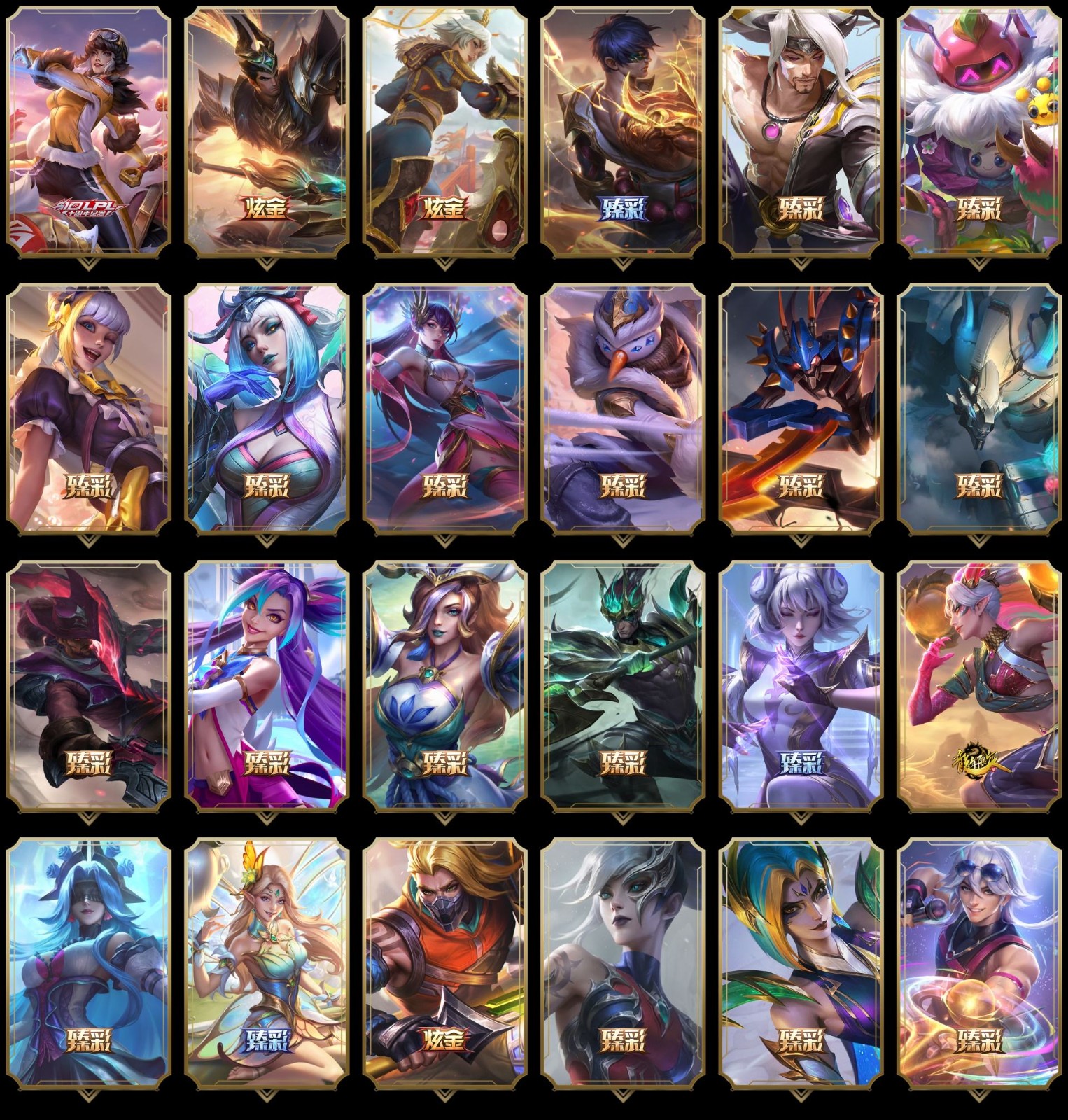 【重要炫彩】无畏骑士瑟庄妮赤子初心 吕布奉先炫金战神 替父从军花木兰炫金龙刃 神龙尊者圣龙李青龙腾云起 灵魂莲华亚索霜见 可爱可爱粉红红布里茨 咖啡甜心金克丝核桃巴菲 净雪之月莫甘娜冬虹 玉剑传说舞剑仙承影 持七彩冰棍的雪人易 霸天异形卡兹克掠空魅影 霸天巨兽雪崩墨菲特 西部魔影卢锡安贝利尔之怠 星之守护者金克丝黑洞 水晶泰坦诺提勒斯破碎之光 永恒之森阿狸瑰蕾之尾 源代码乐芙兰梦幻闪击 音浪狂舞莎弥拉 制胜金靴李青浪漫攻势 战斗教授格雷福斯独角兽 驯龙炮手崔丝塔娜威仪晶龙 奥德赛亚索恒星游历者 地狱火阿木木阿米的学徒 最后一只恐龙纳尔浪漫粉晶龙 奥德赛墨菲特恒星游历者 狗头内瑟斯内有恶犬萌萌号 黯晶之眼维克兹凝结之焰 泳池派对璐璐萌萌红尾金 青花瓷厄运小姐月色 黑夜使者嘉文四世白夜 青花瓷艾瑞莉娅月色 天龙之子卡莎飞龙乘云 幽梦玫瑰辛德拉纯洁花蕾 花仙子拉克丝纹白 墨之影武者亚索金墨耀影 魔女阿卡丽虚荣 殿堂传奇乐芙兰登神 心之钢伊泽瑞尔天纵才华