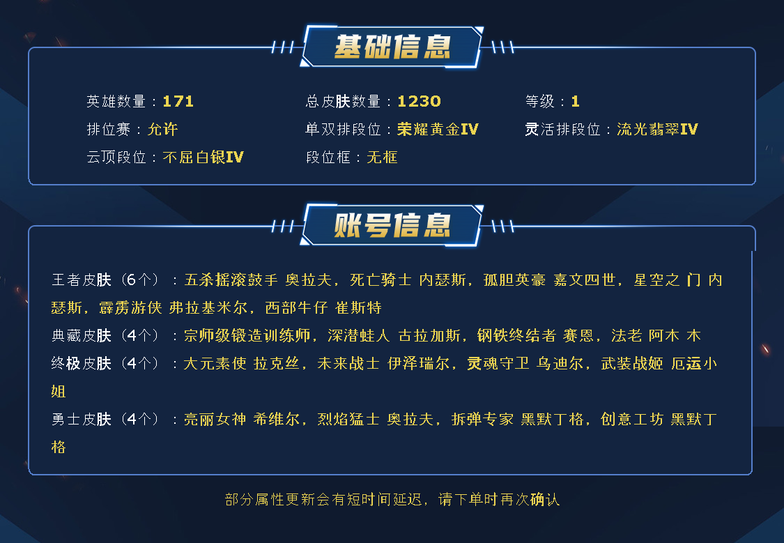 ~~喜欢记得收藏~~可排位~~1219皮全英雄丨909原皮310炫彩~~租之前尽量查一下游戏ID,确保段位是您需要的,避免浪费您的时间~~请勿挂机逃跑故意送人头,谢谢合作,谢谢~~